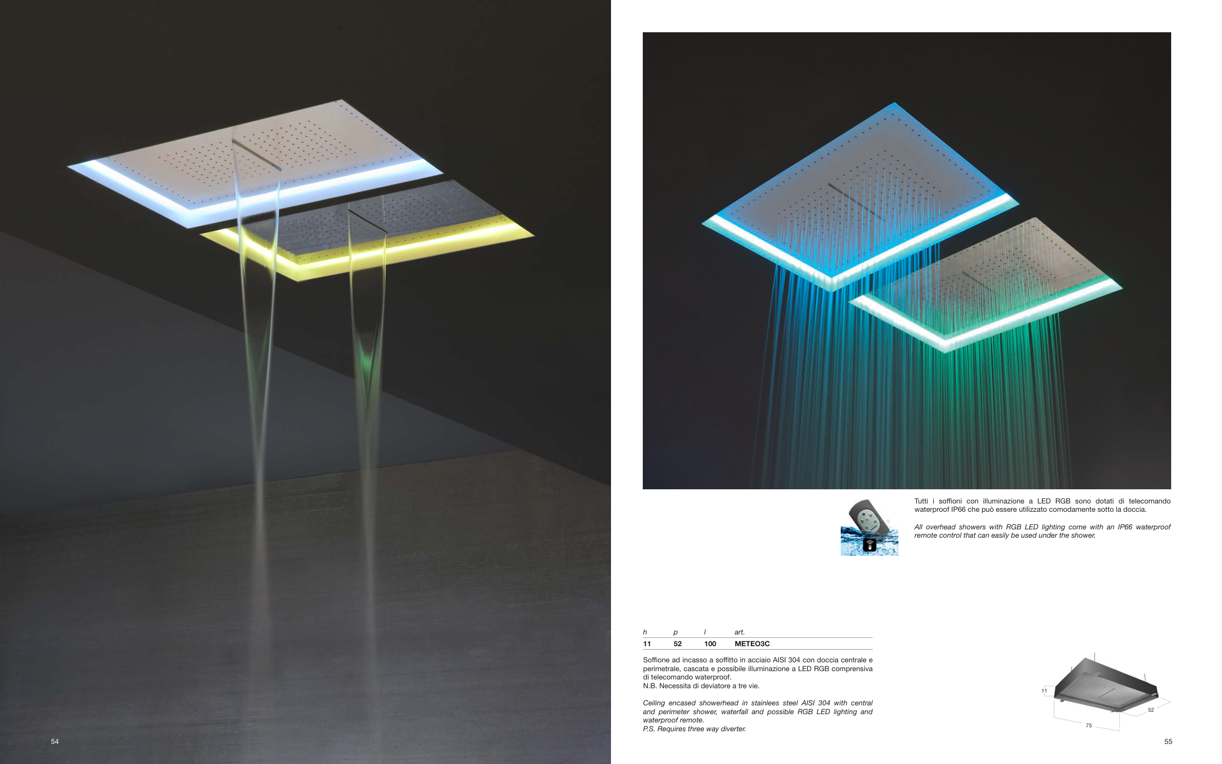 All overhead showers with RGB LED lighting come with an IP66 waterproof