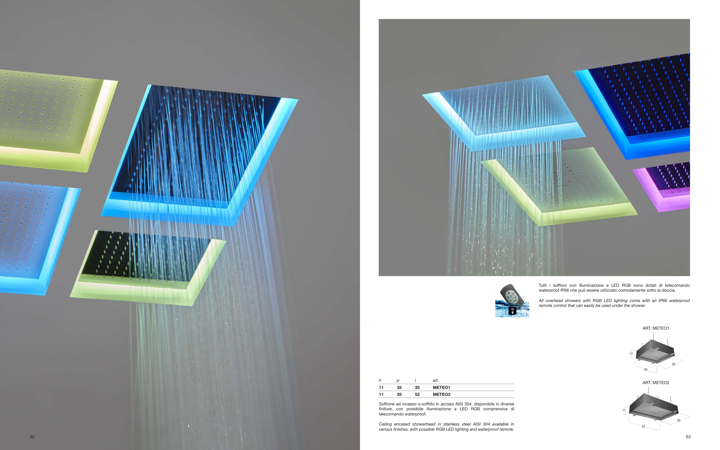 All overhead showers with RGB LED lighting come with an IP66 waterproof