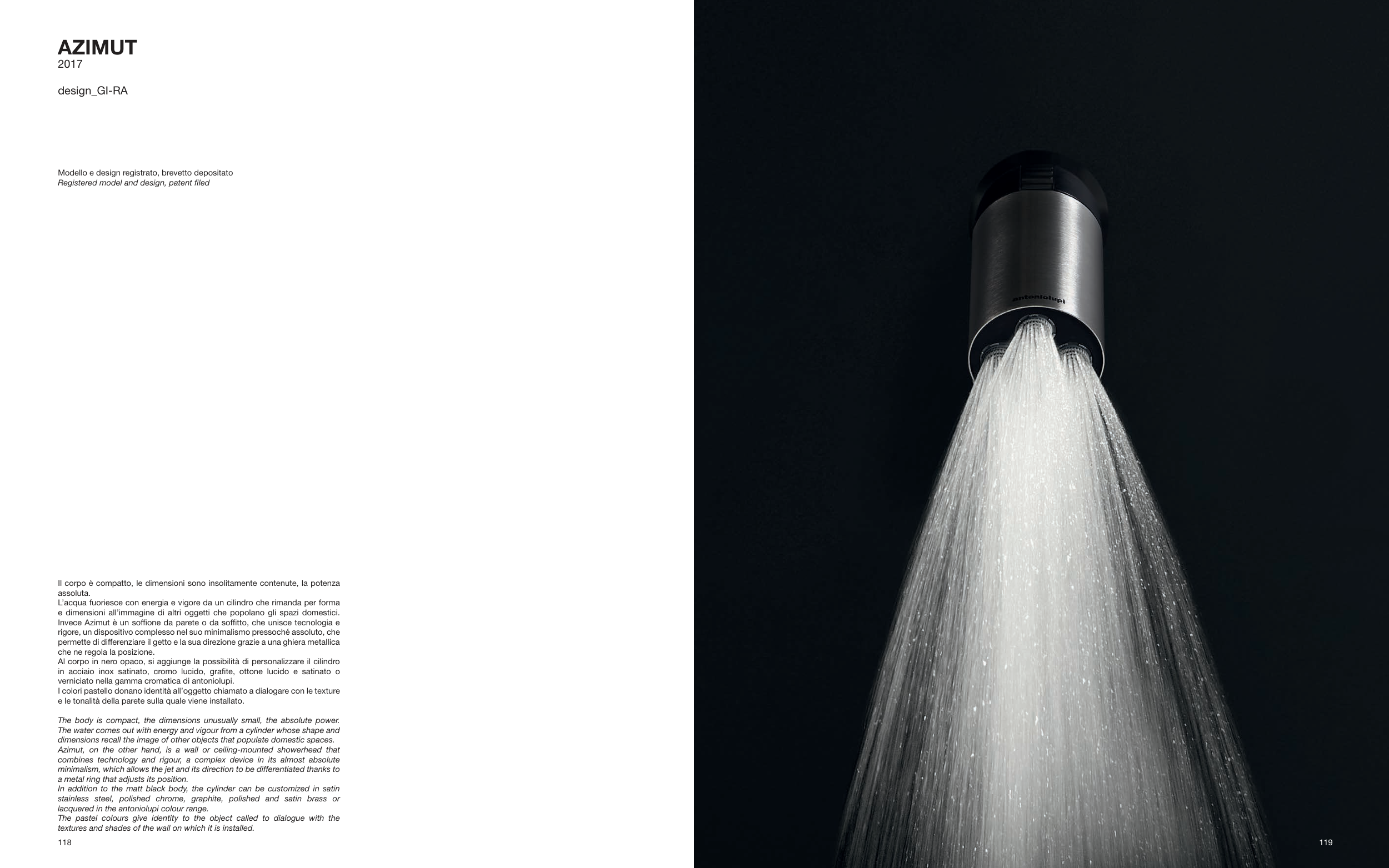 Invece Azimut è un soffione da parete o da soffitto, che unisce tecnologia e
