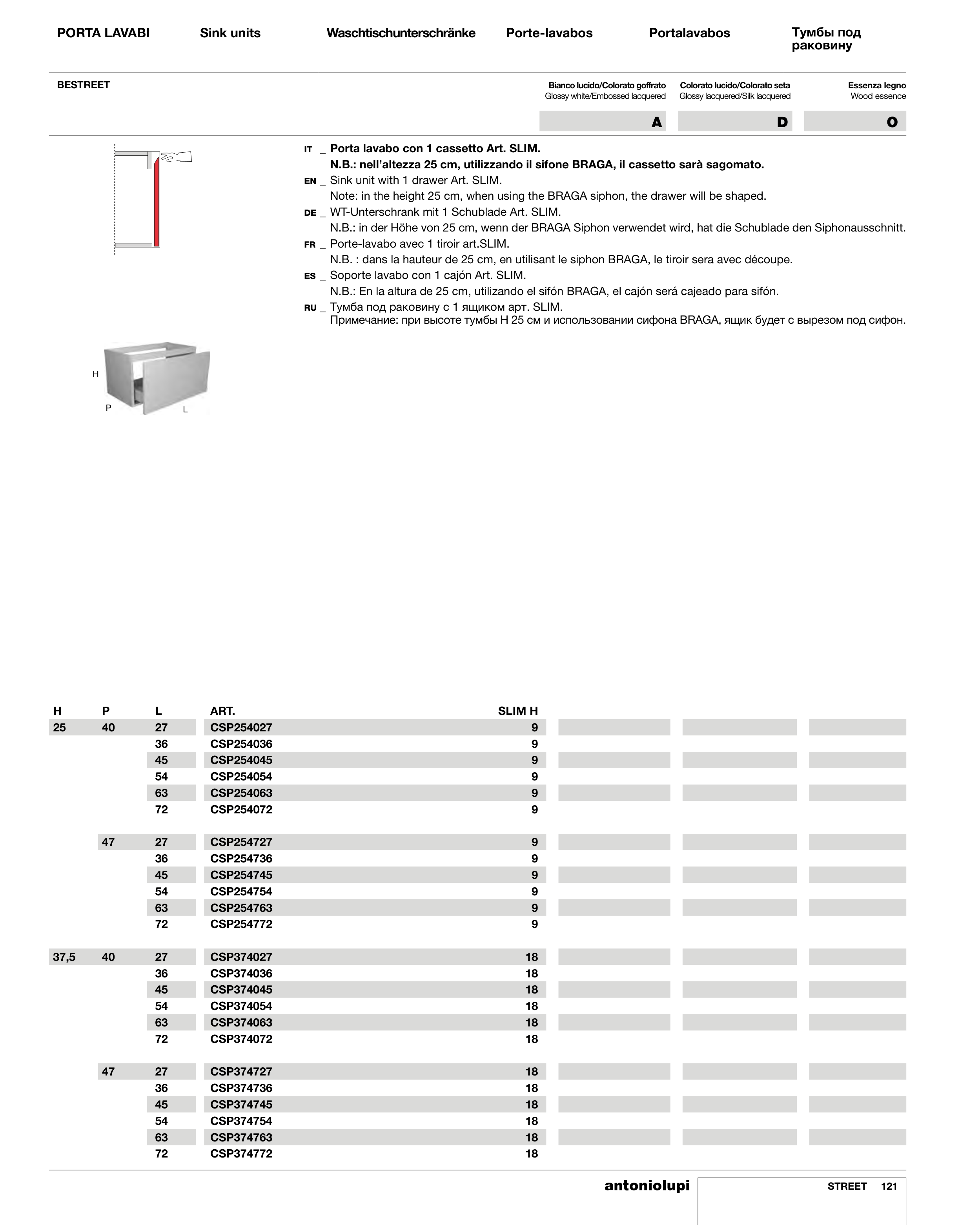 IT _ Porta lavabo con 1 cassetto Art. SLIM.