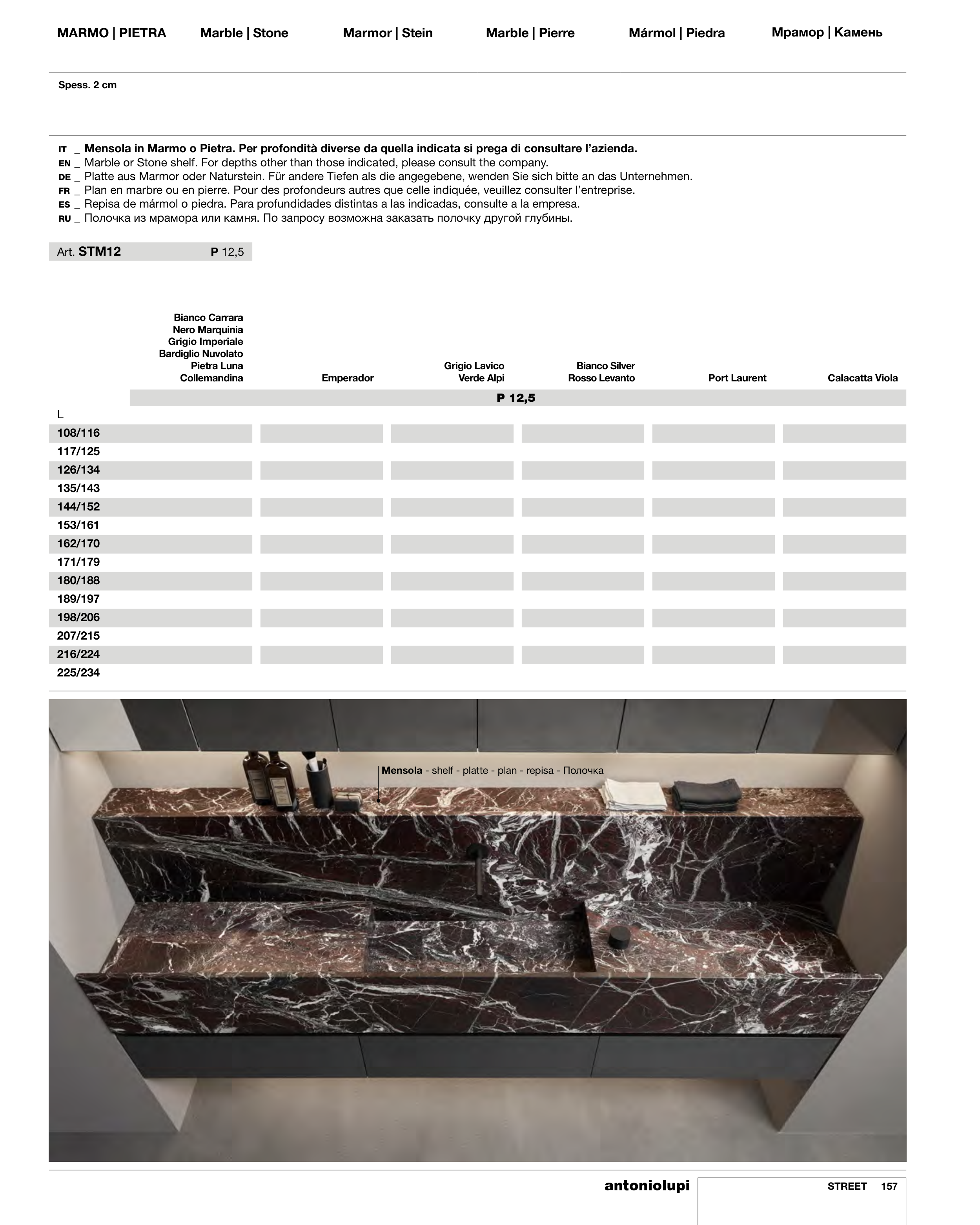 EN _ Marble or Stone shelf. For depths other than those indicated, please consult the company.