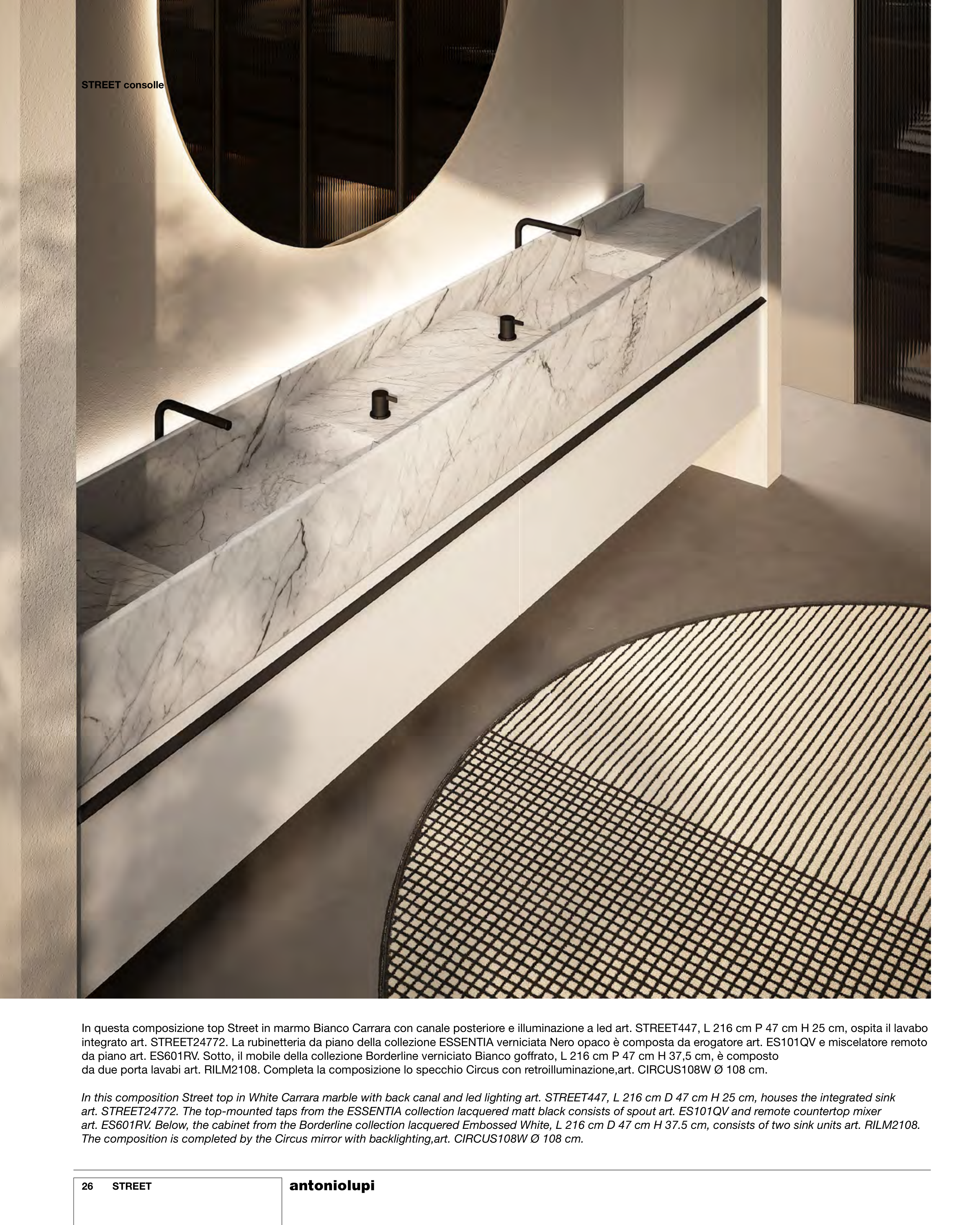 The composition is completed by the Circus mirror with backlighting,art. CIRCUS108W Ø 108 cm.