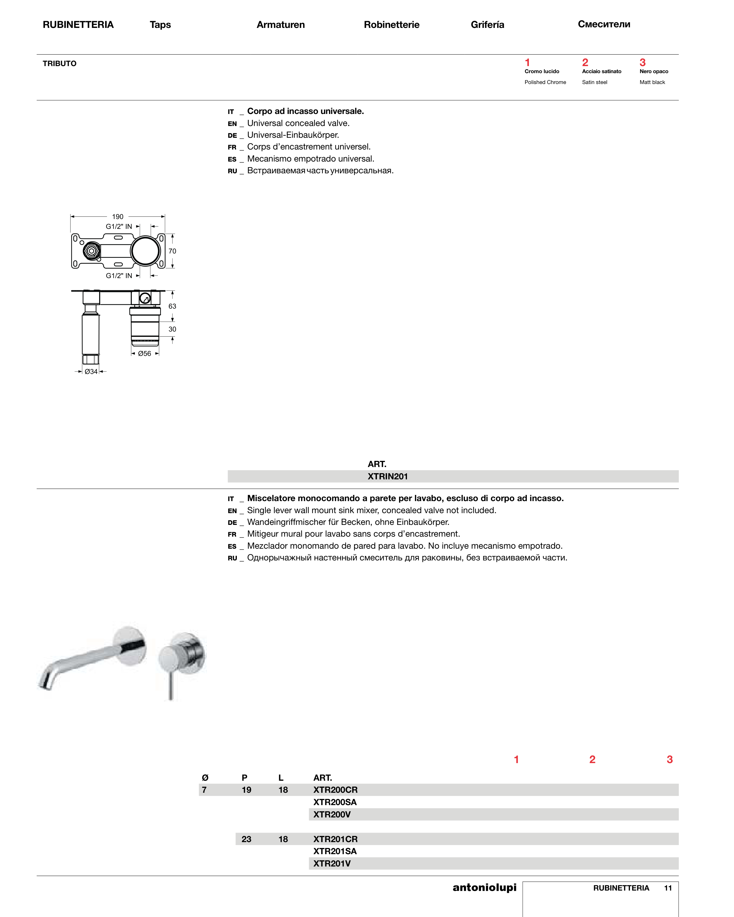 IT _ Miscelatore monocomando a parete per lavabo, escluso di corpo ad incasso.