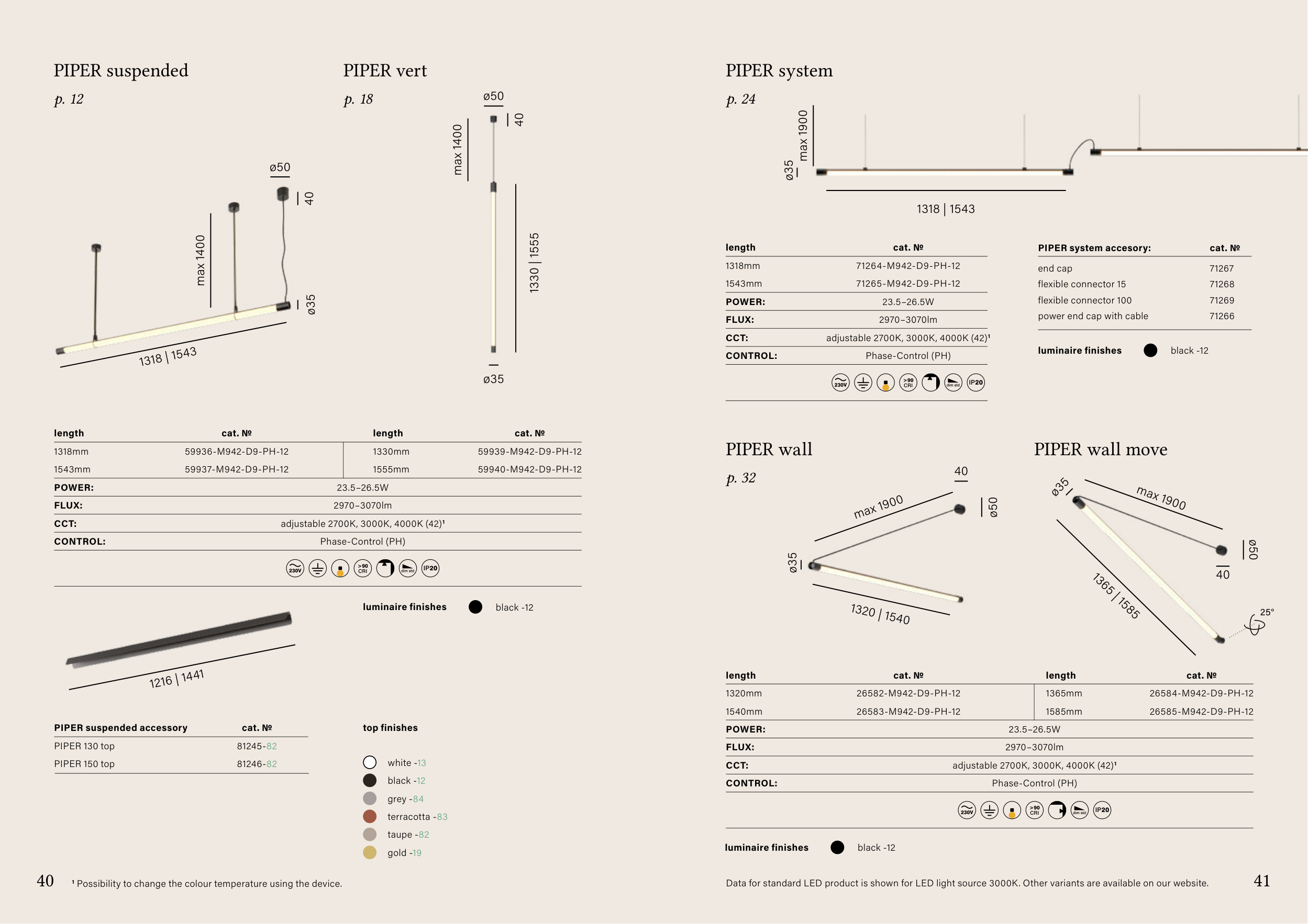 Data for standard LED product is shown for LED light source 3000K. Other variants are available on our website.