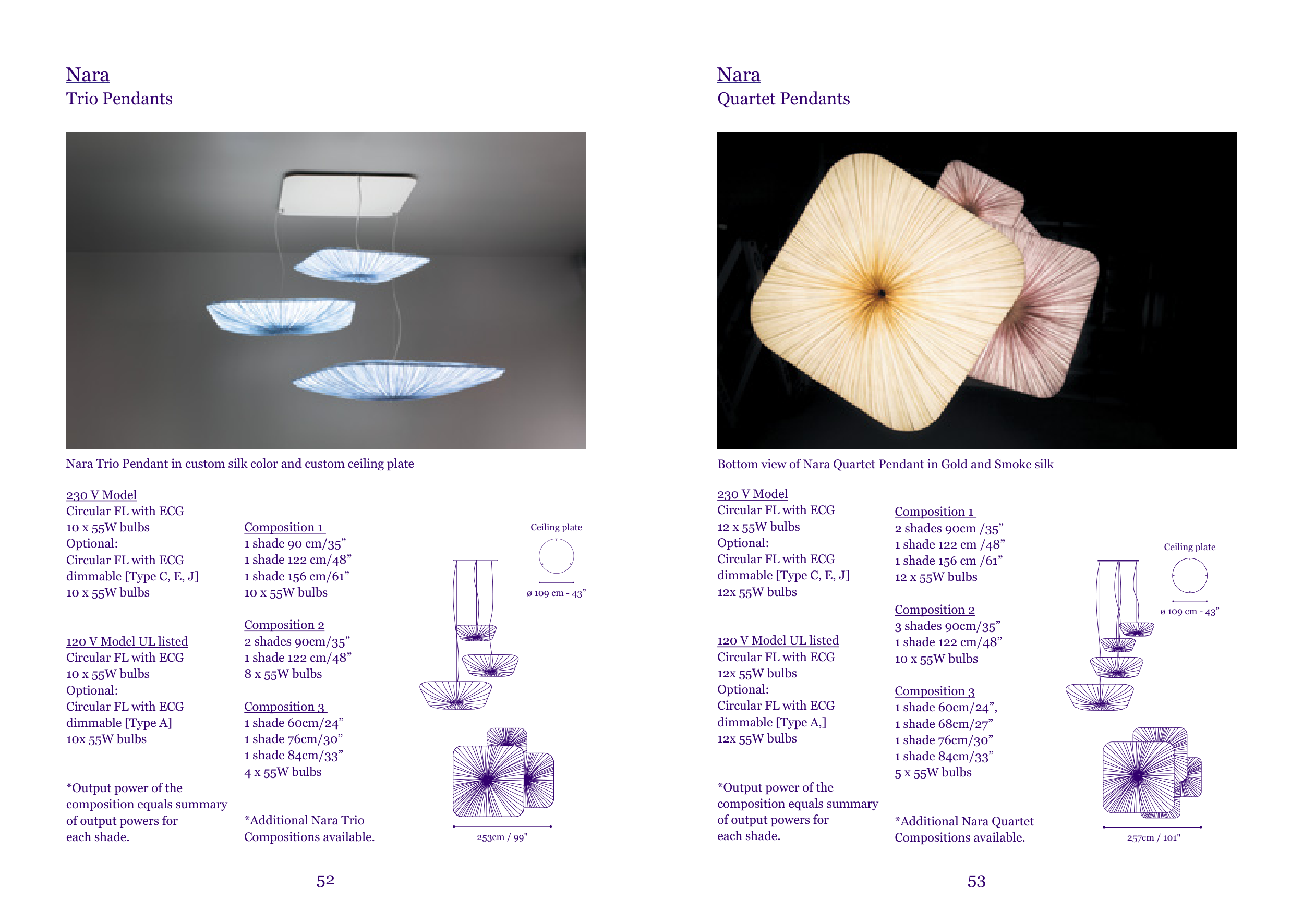 Nara Trio Pendant in custom silk color and custom ceiling plate