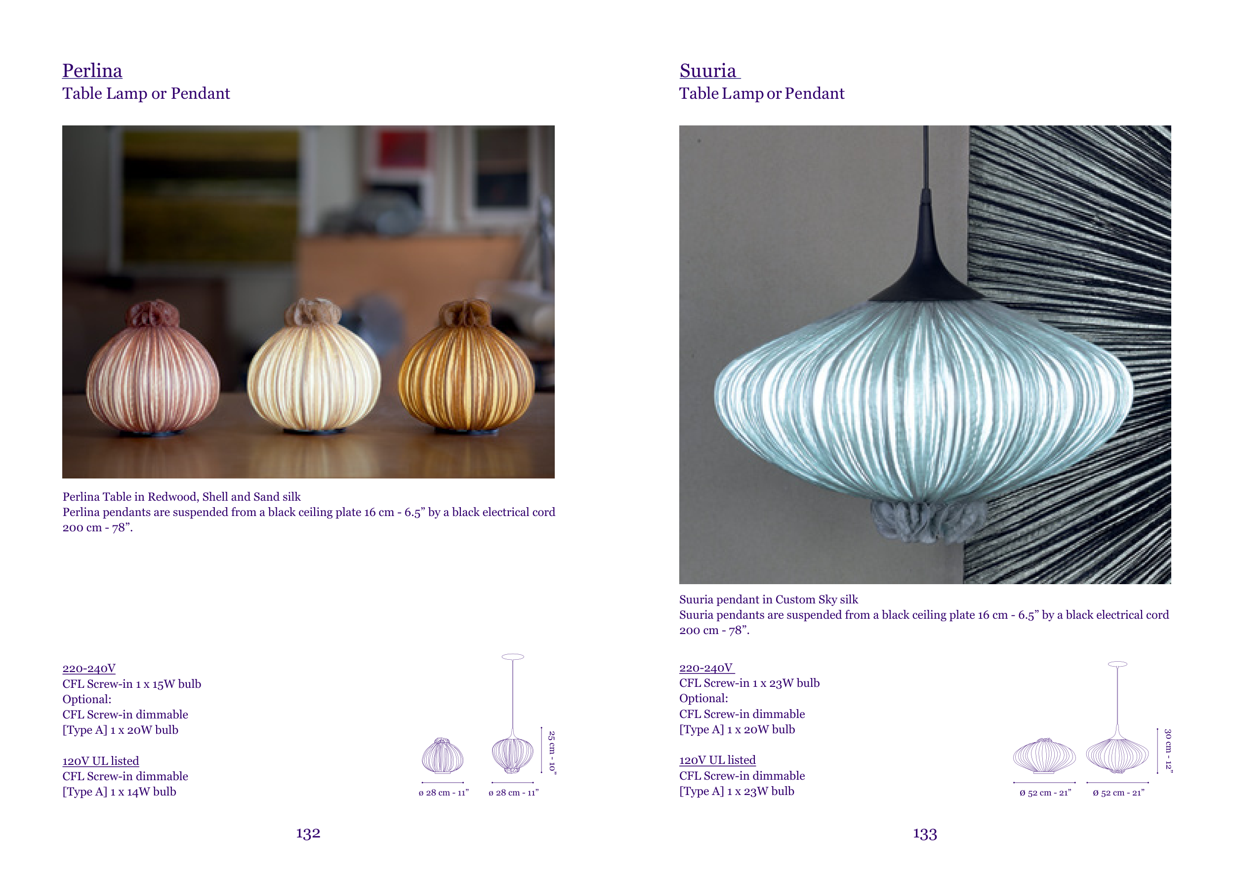 Suuria pendants are suspended from a black ceiling plate 16 cm - 6.5” by a black electrical cord