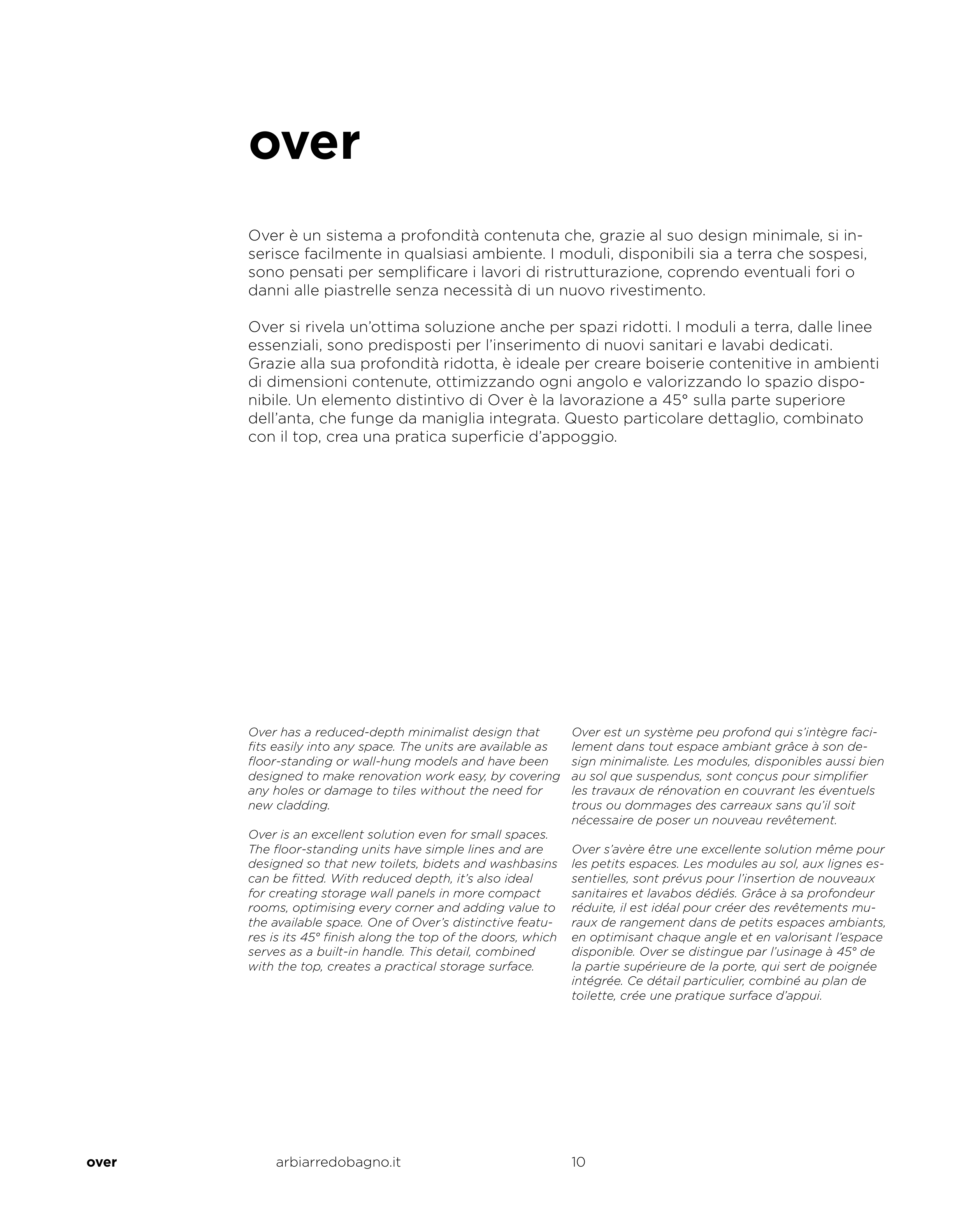 Over è un sistema a profondità contenuta che, grazie al suo design minimale, si in-