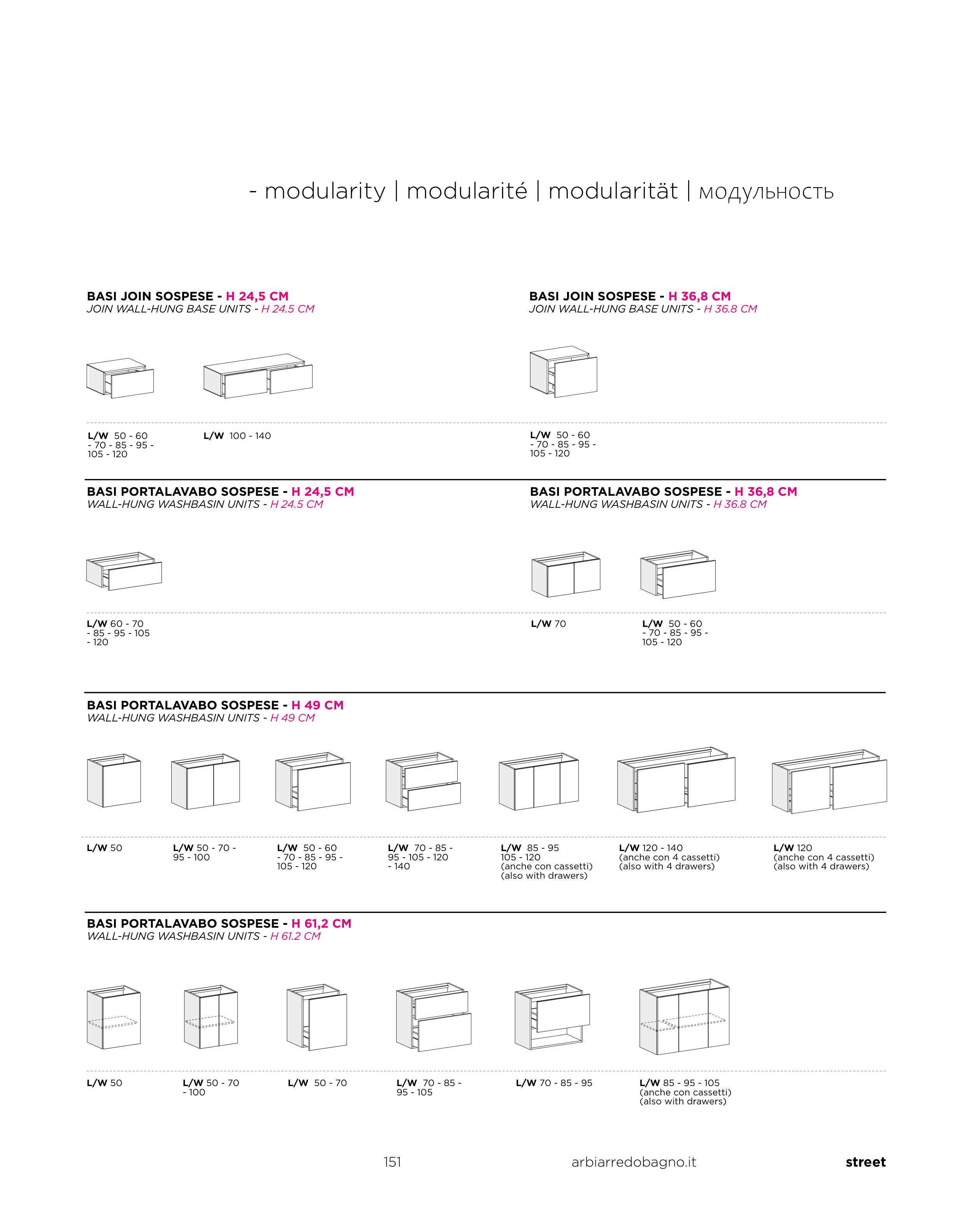 JOIN WALL-HUNG BASE UNITS - H 36.8 CM