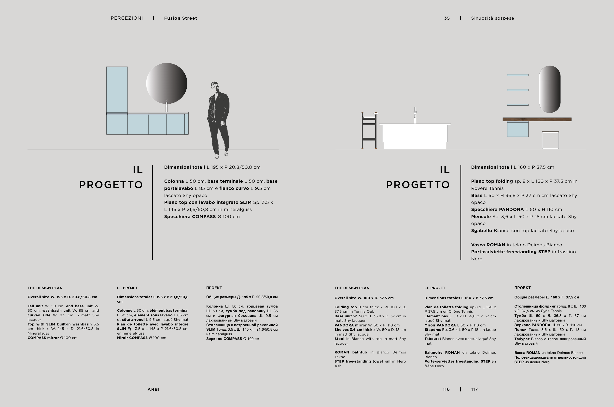 portalavabo L 85 cm e fianco curvo L 9,5 cm