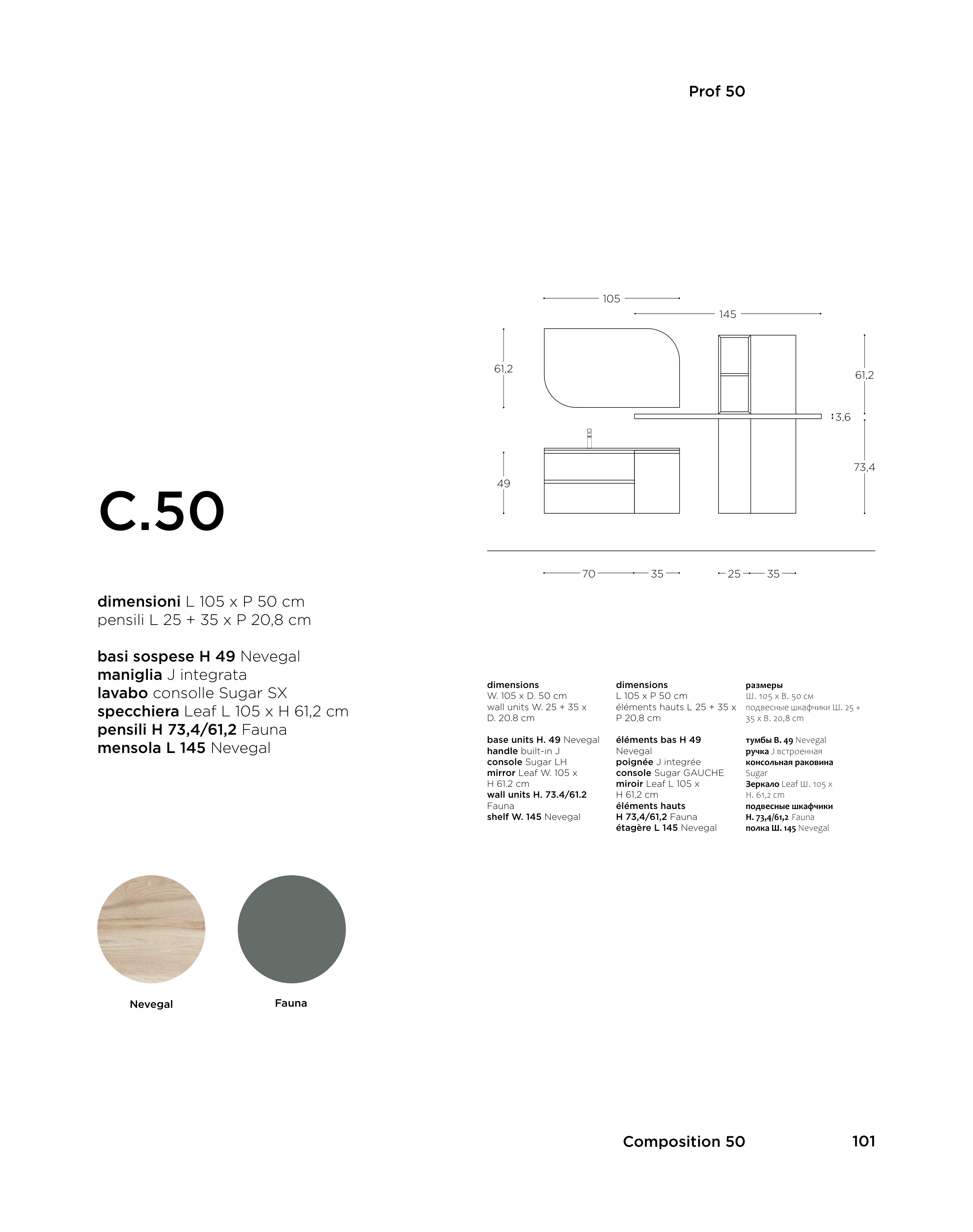 dimensioni L 105 x P 50 cm