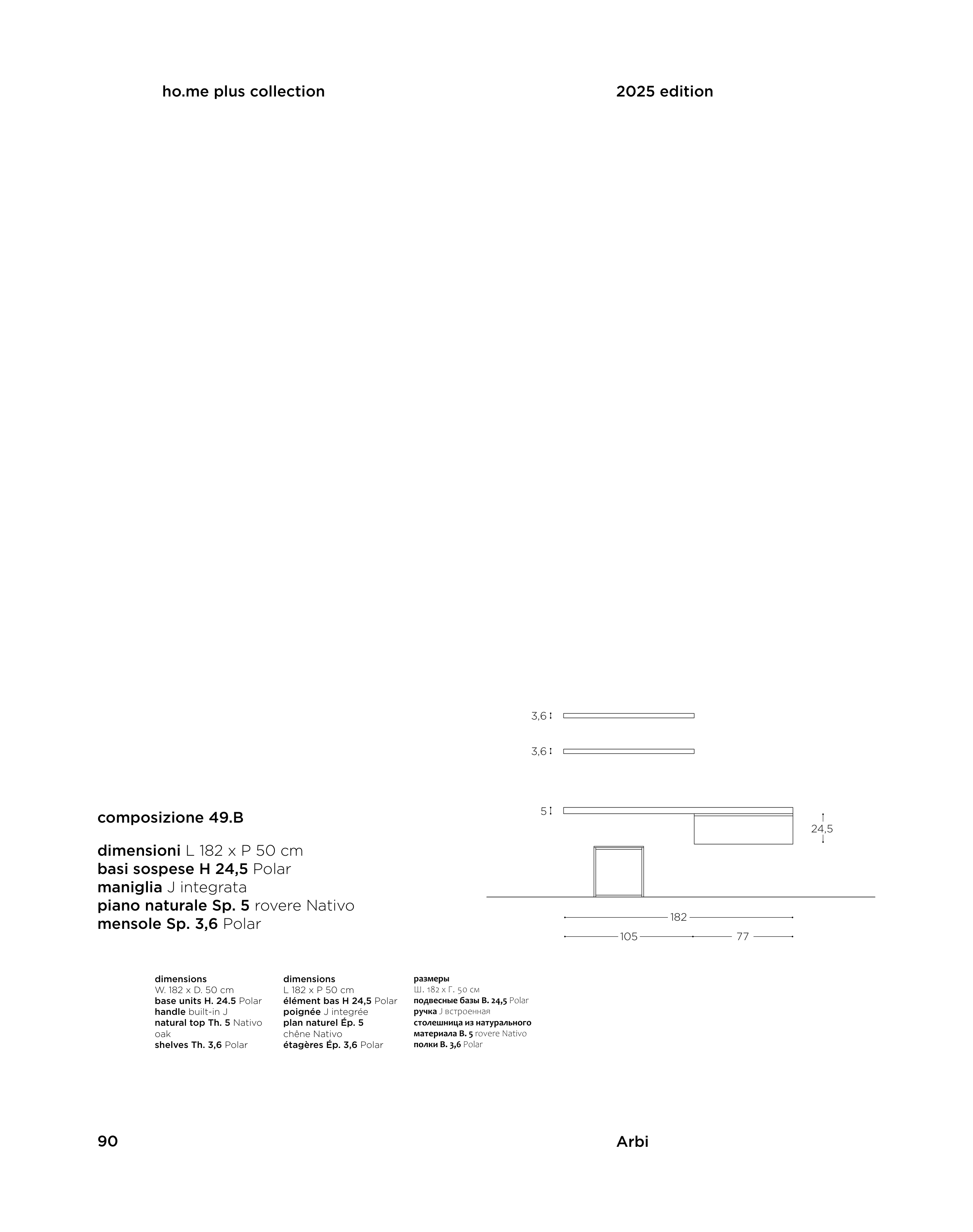 dimensioni L 182 x P 50 cm