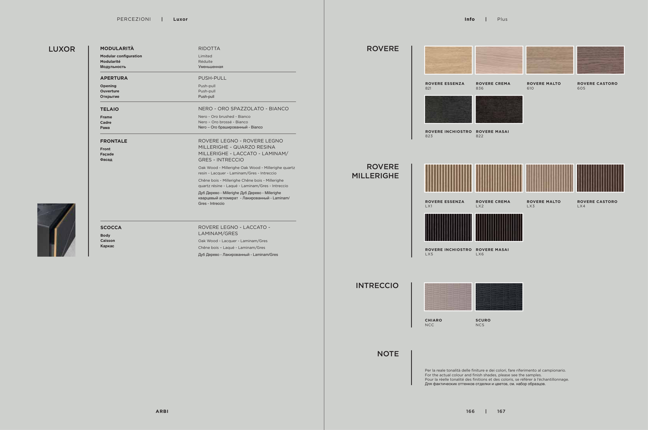 Per la reale tonalità delle finiture e dei colori, fare riferimento al campionario.