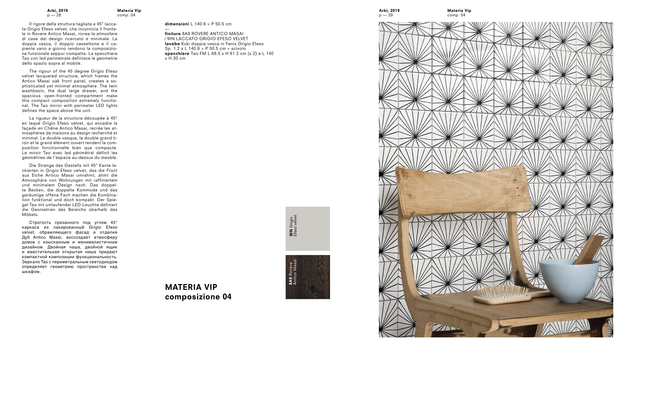ta Grigio Efeso velvet, che incornicia il fronta-