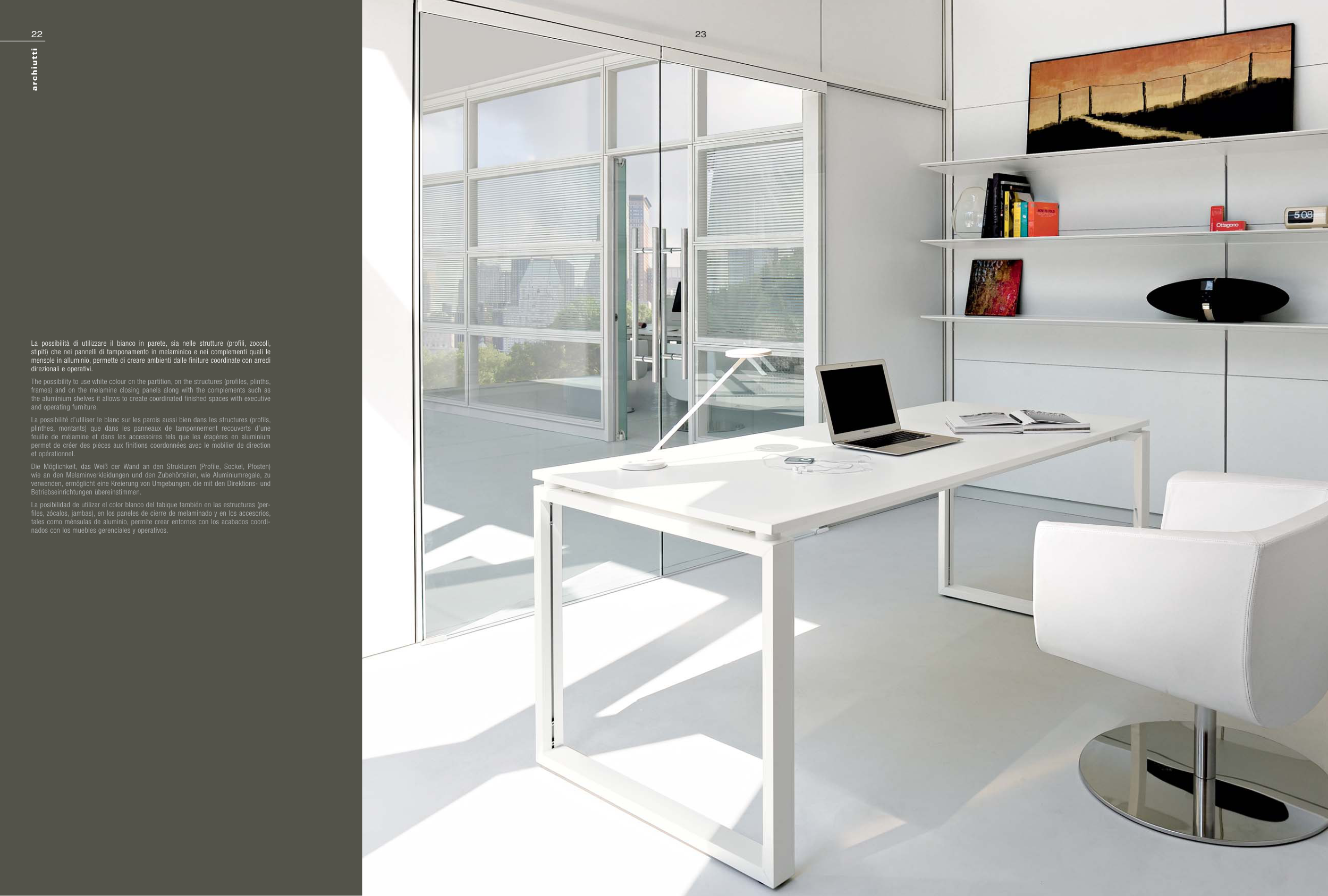 stipiti) che nei pannelli di tamponamento in melaminico e nei complementi quali le