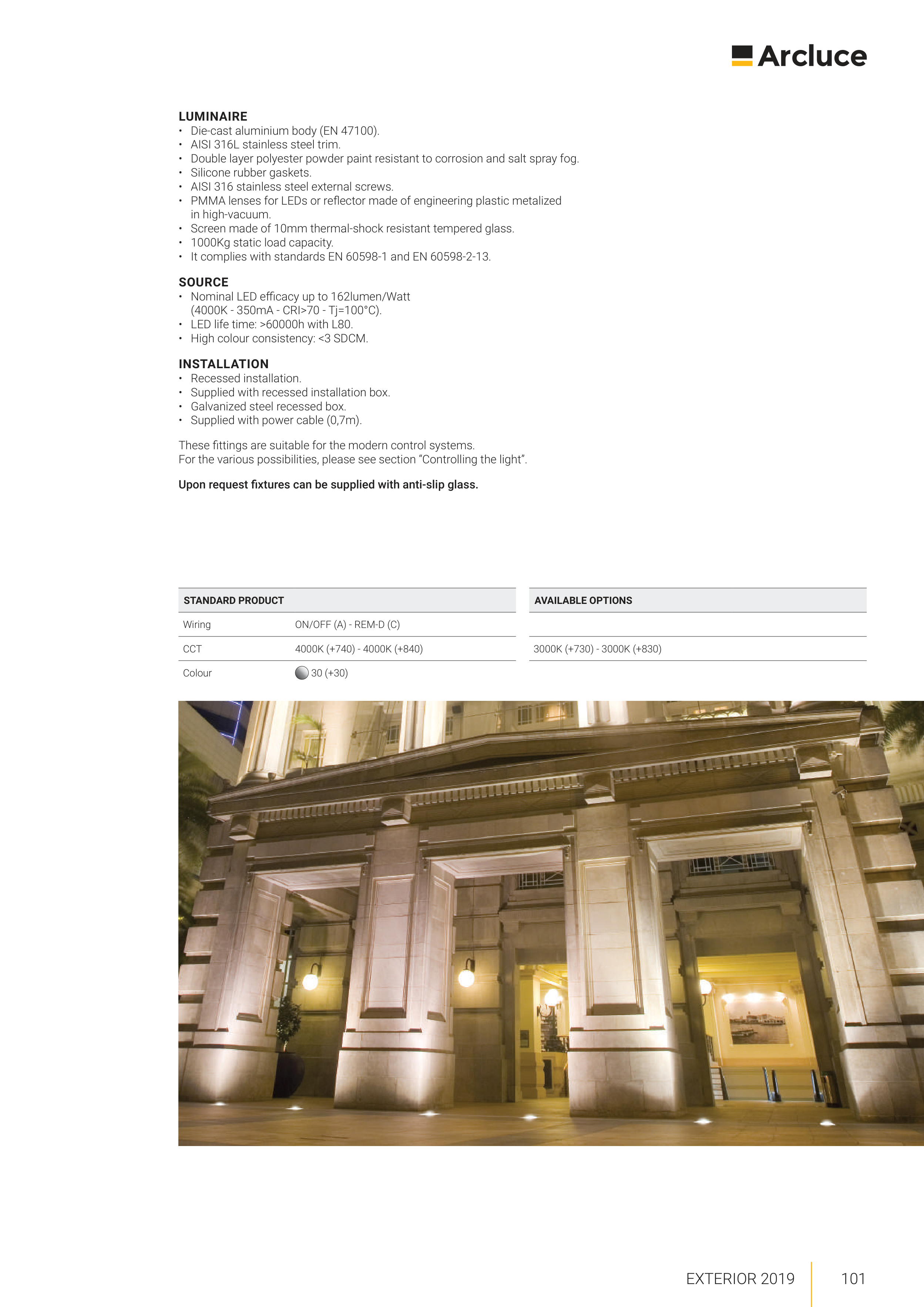 Upon request fixtures can be supplied with anti-slip glass.