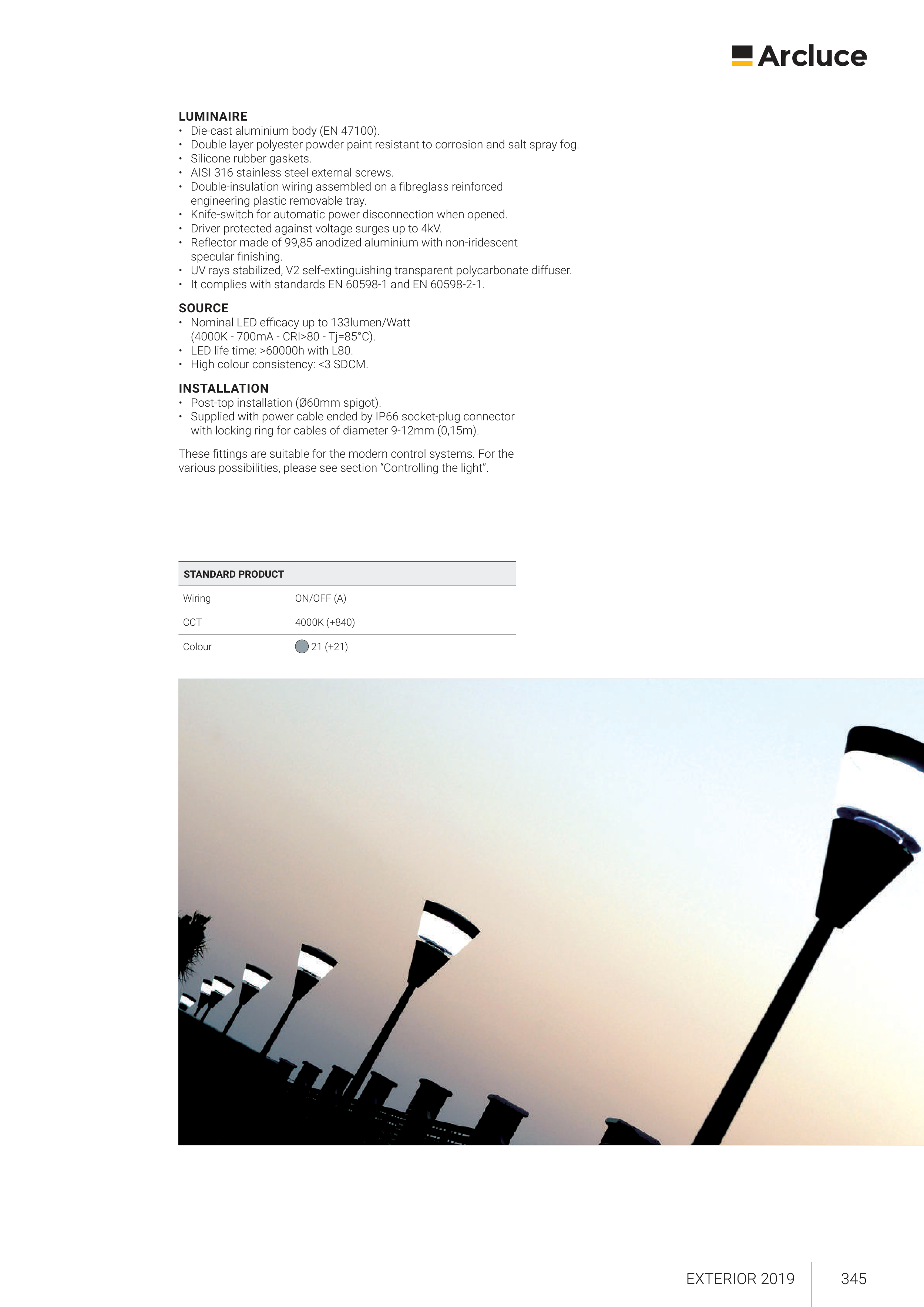 • Post-top installation (Ø60mm spigot).