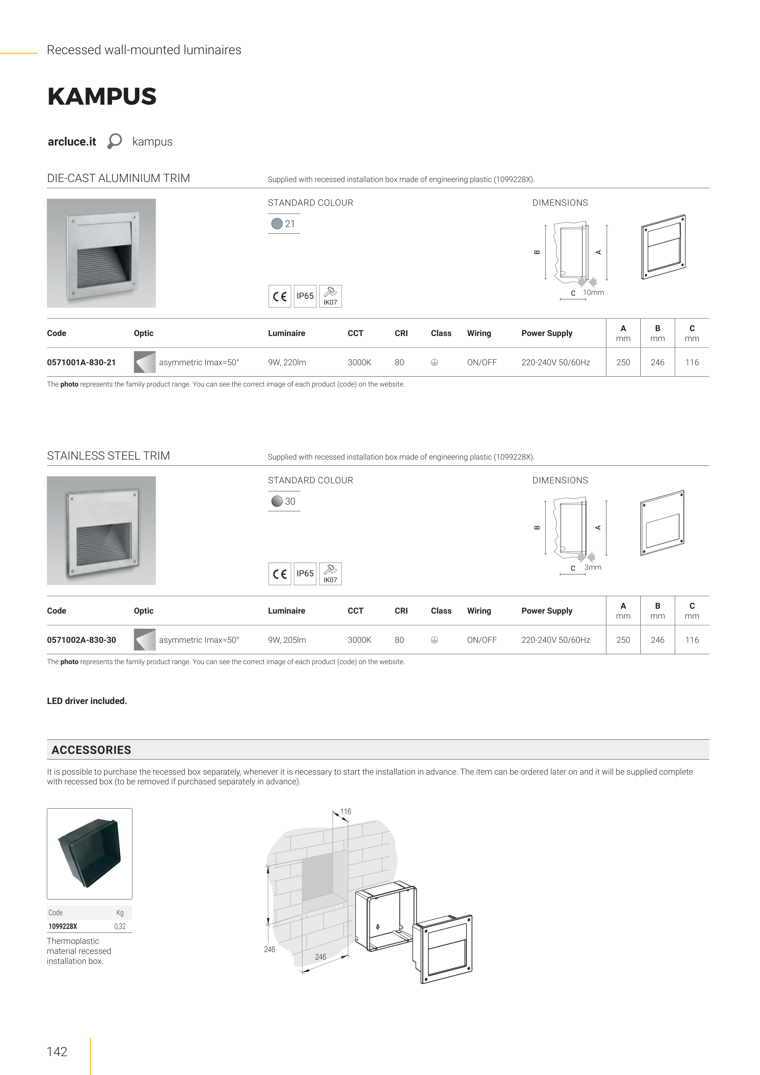 Supplied with recessed installation box made of engineering plastic (1099228X).
