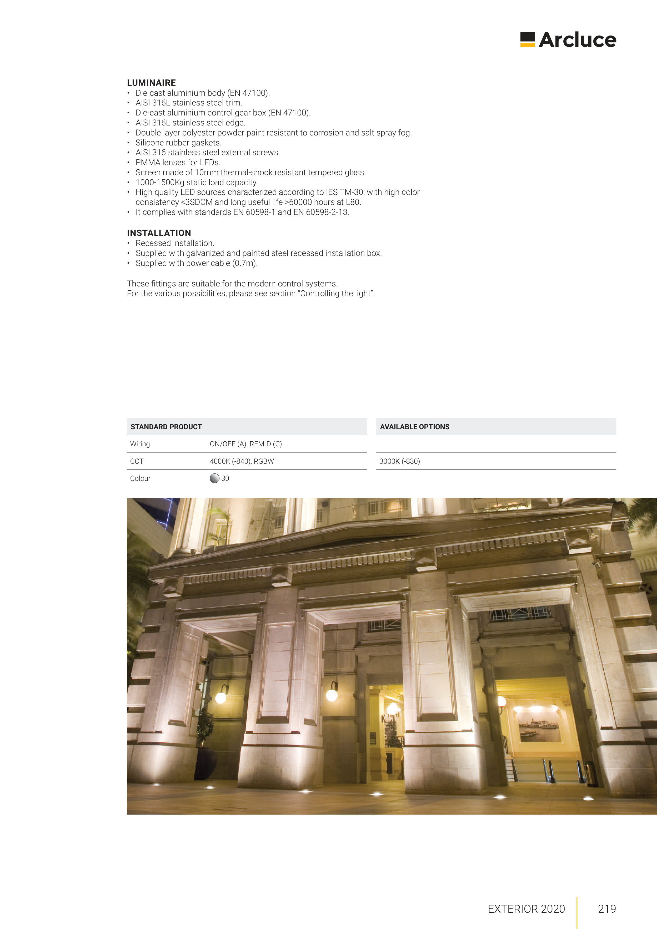 • It complies with standards EN 60598-1 and EN 60598-2-13.
