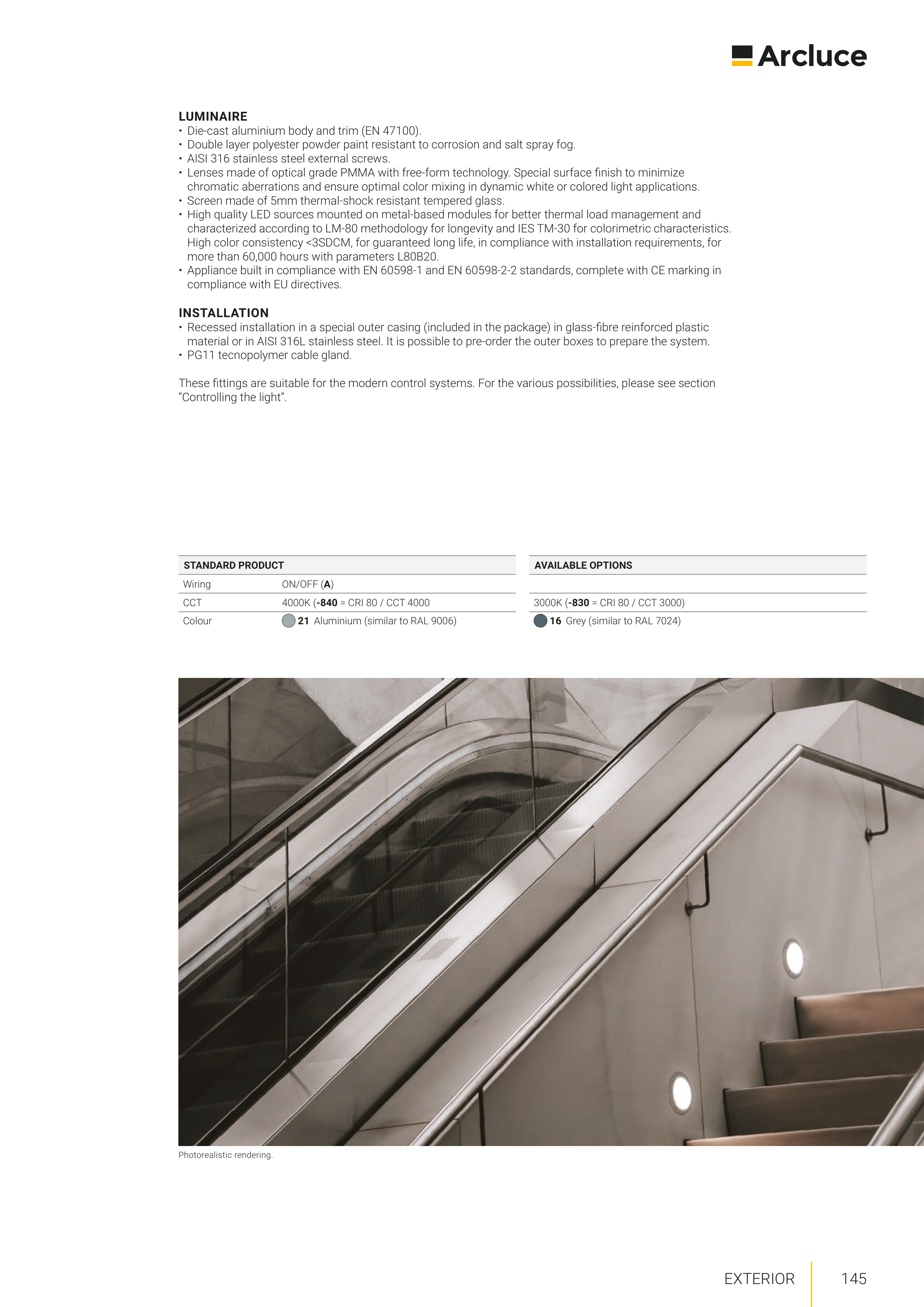 • Appliance built in compliance with EN 60598-1 and EN 60598-2-2 standards, complete with CE marking in