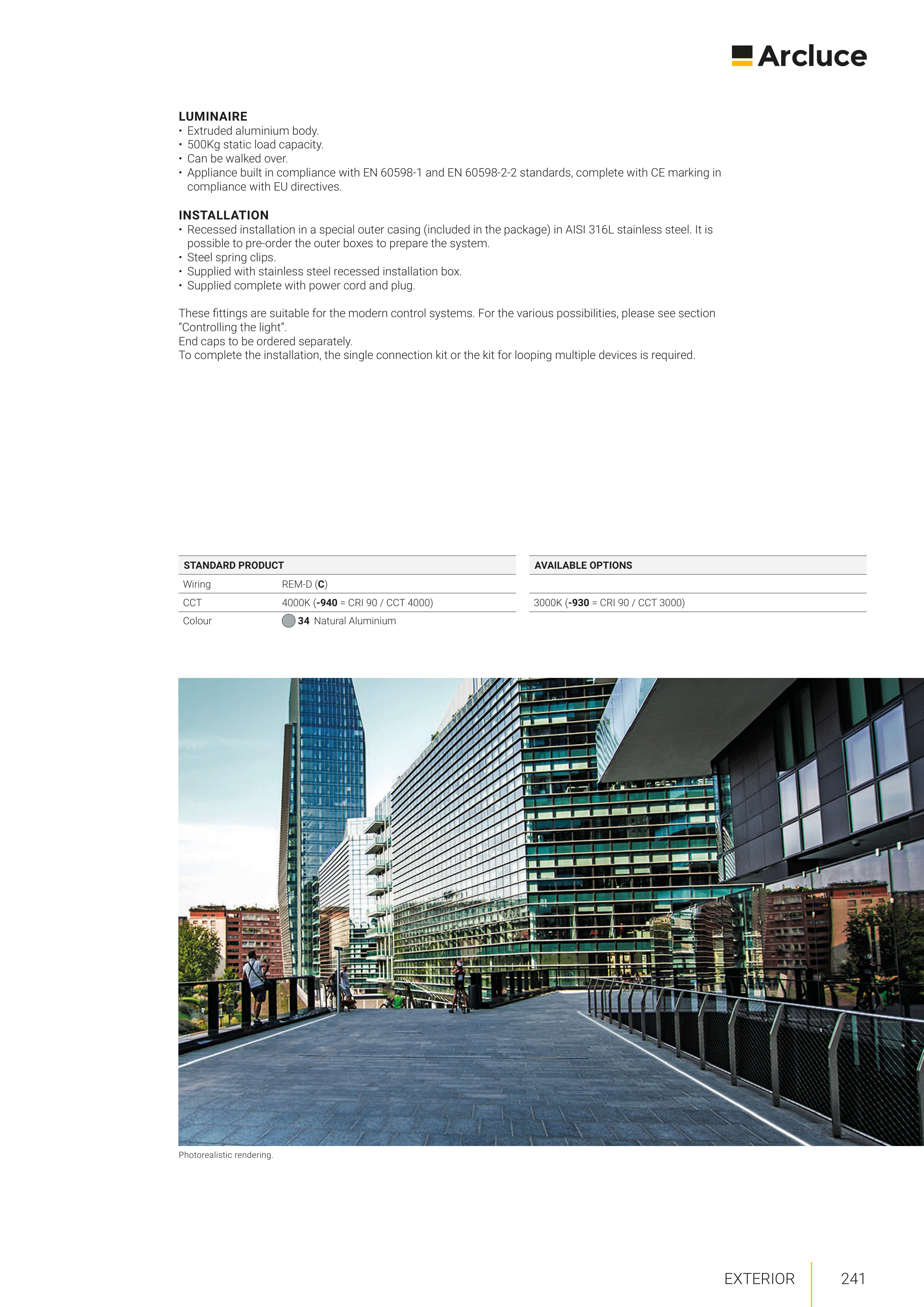 • Appliance built in compliance with EN 60598-1 and EN 60598-2-2 standards, complete with CE marking in