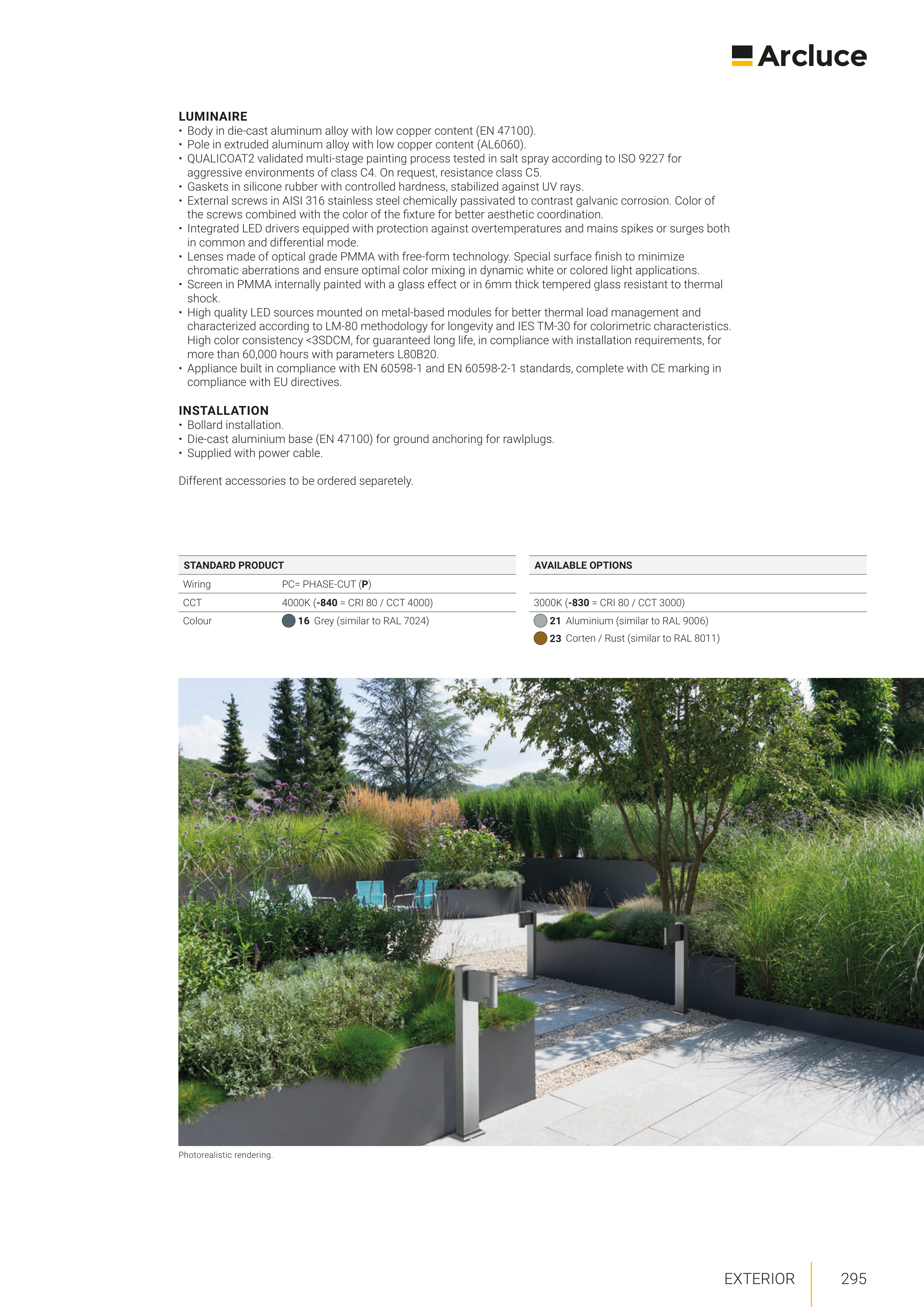 • External screws in AISI 316 stainless steel chemically passivated to contrast galvanic corrosion. Color of
