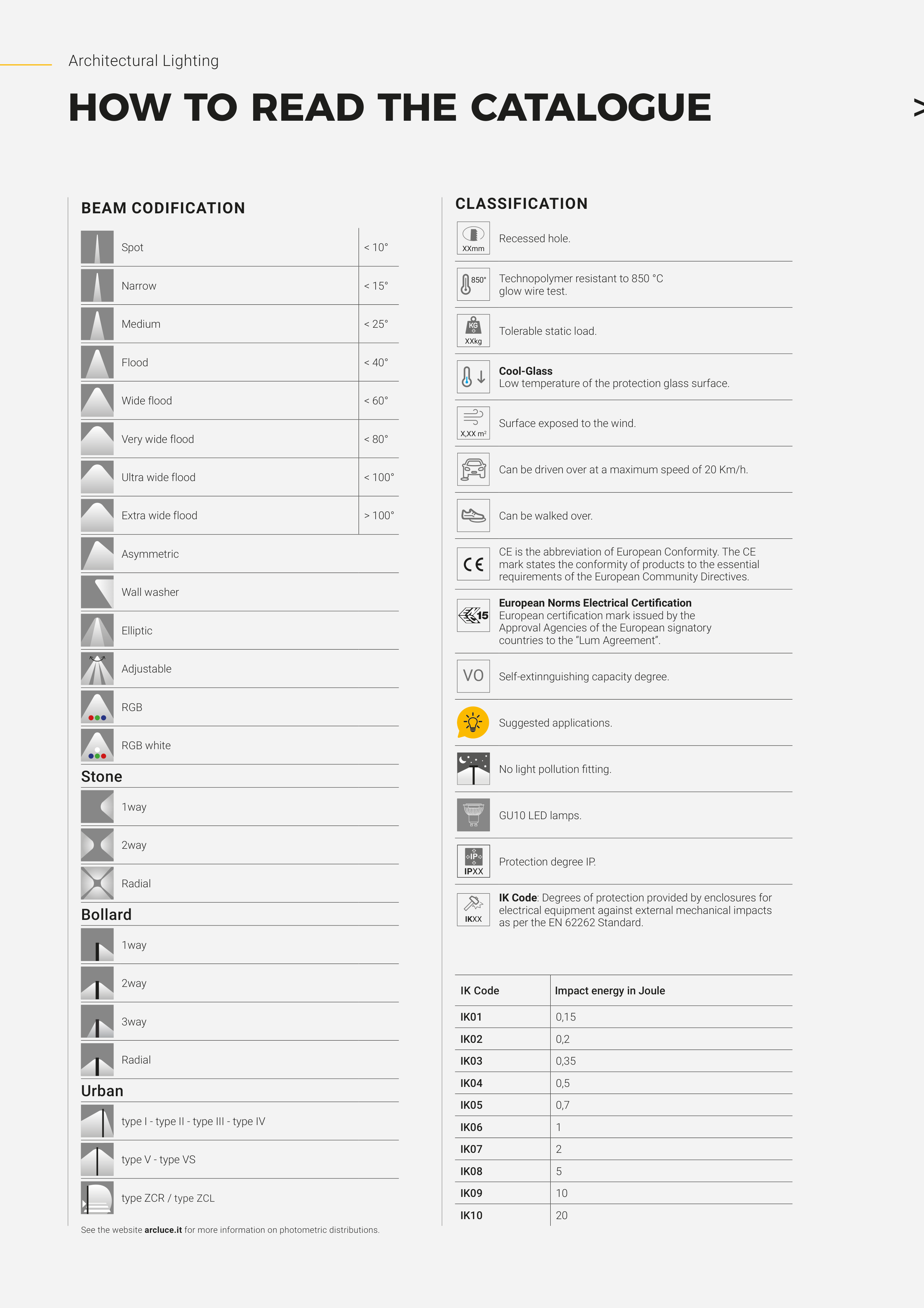 See the website arcluce.it for more information on photometric distributions.