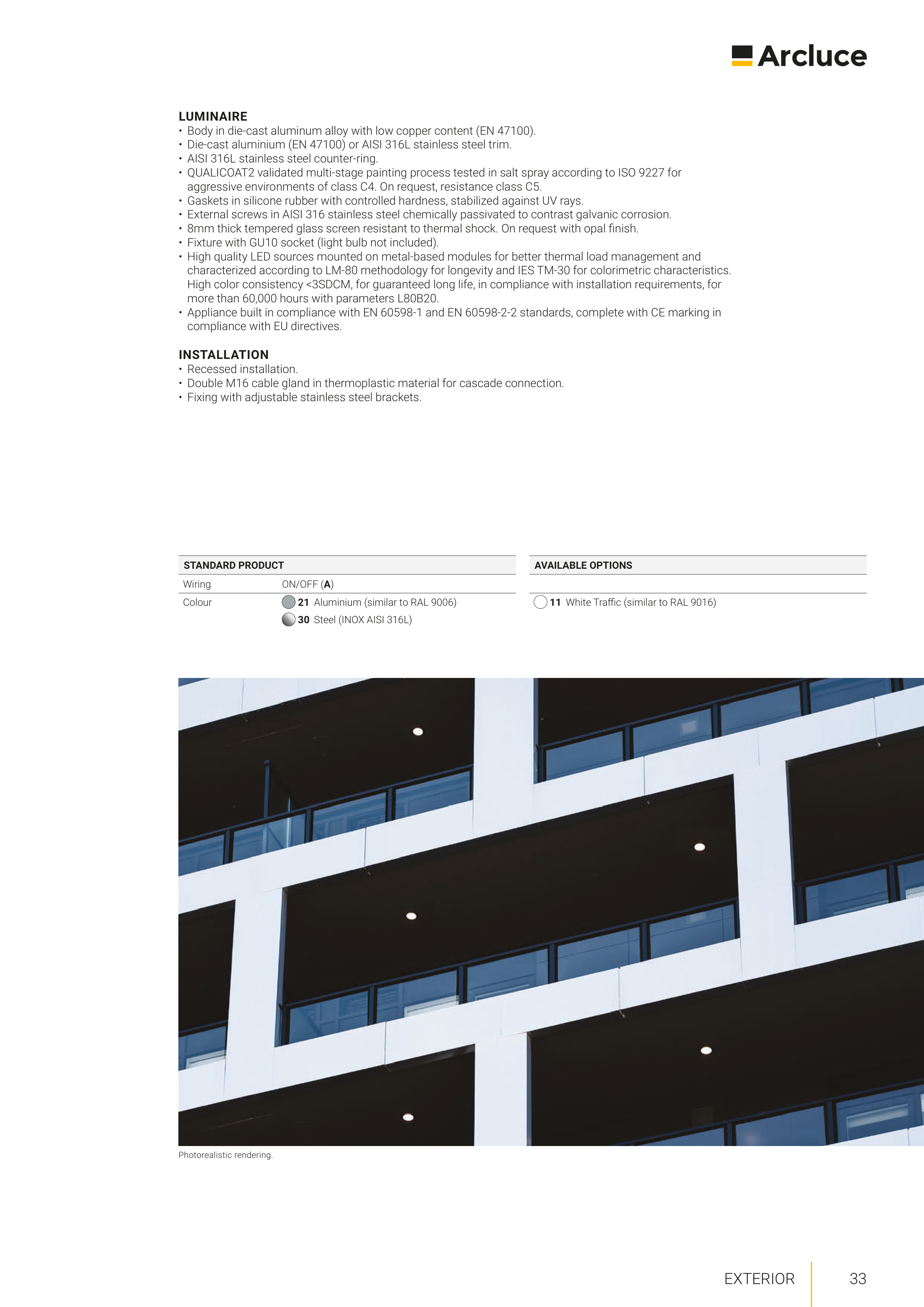 • Die-cast aluminium (EN 47100) or AISI 316L stainless steel trim.