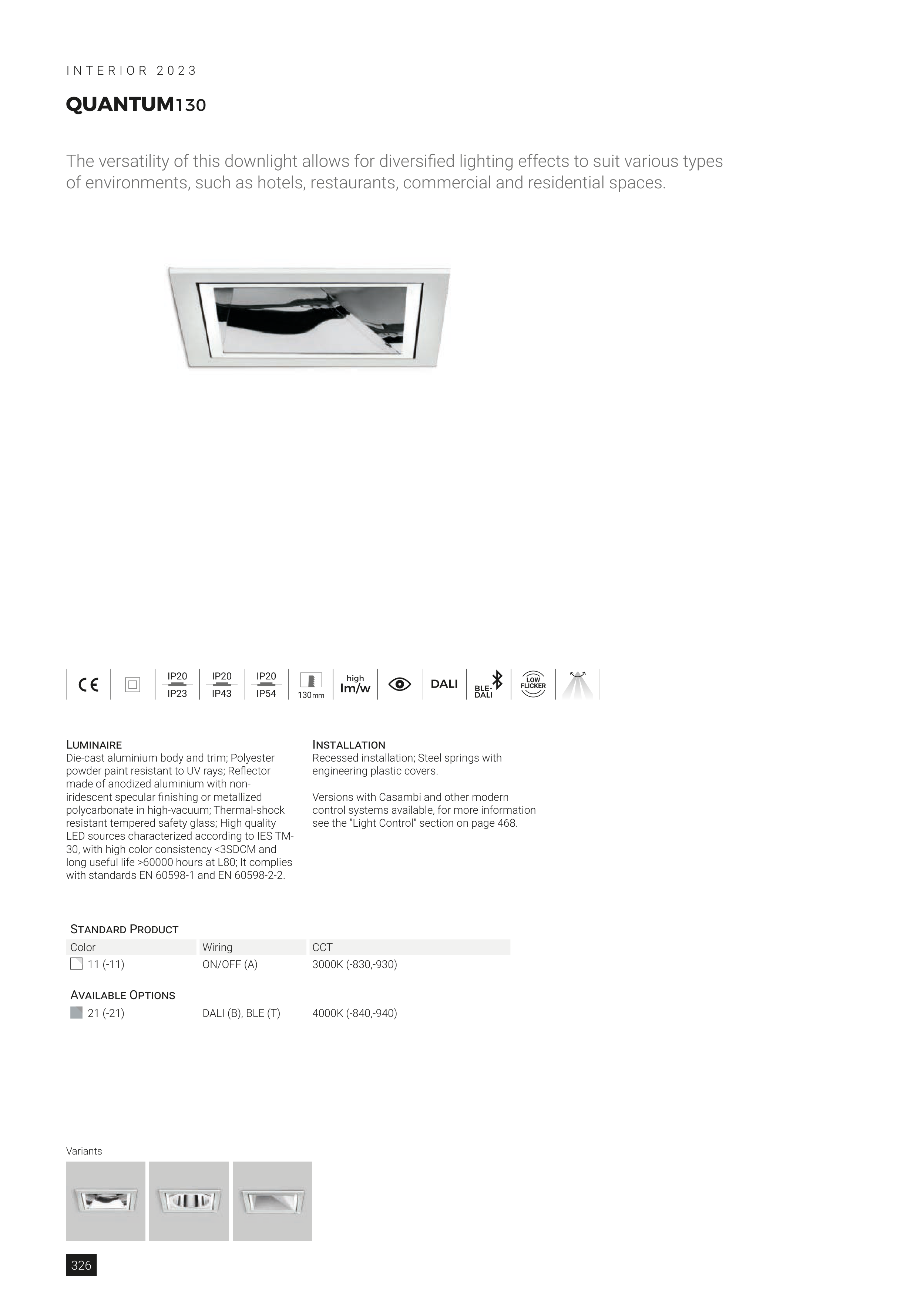 Versions with Casambi and other modern