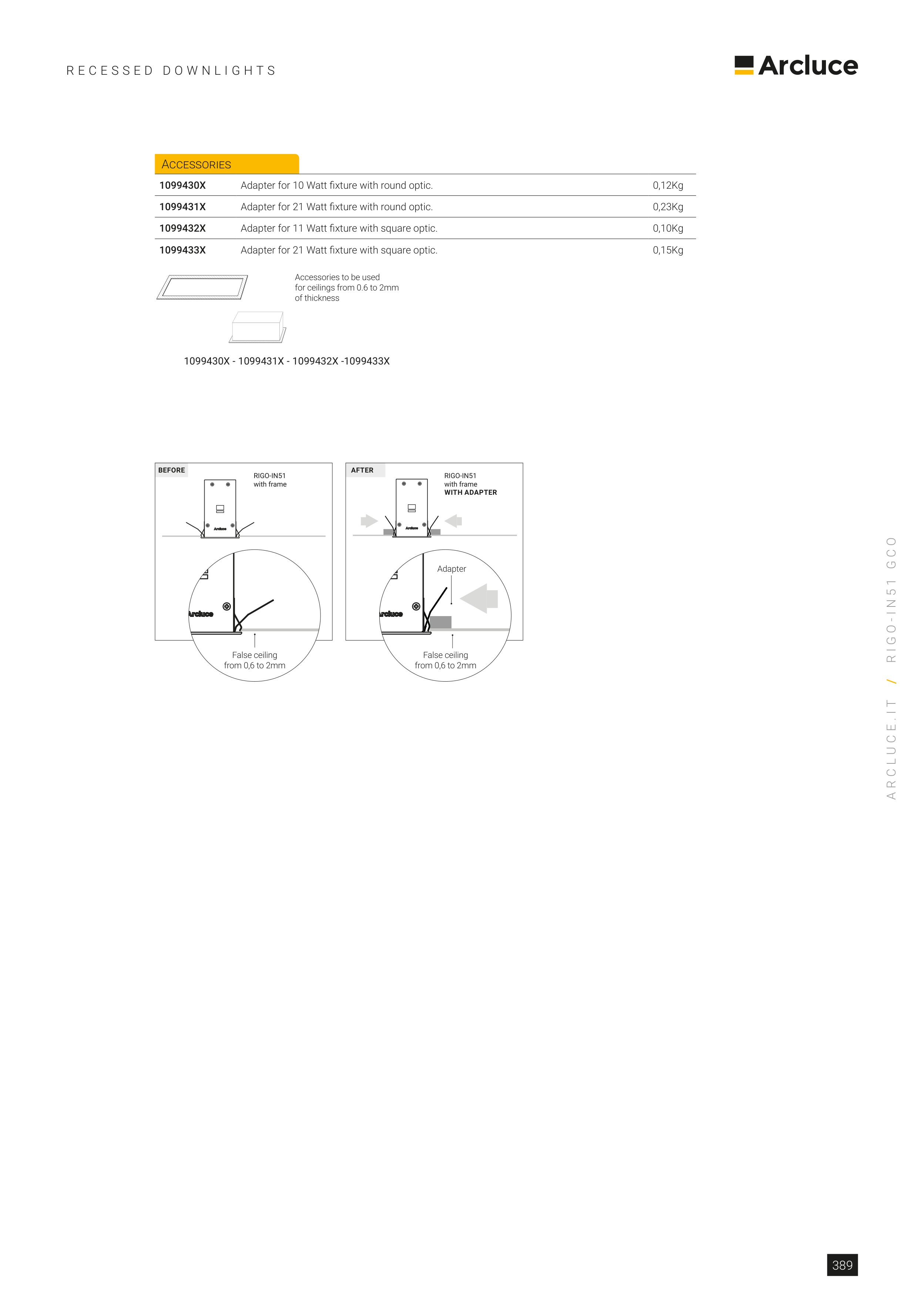 Adapter for 11 Watt fixture with square optic.