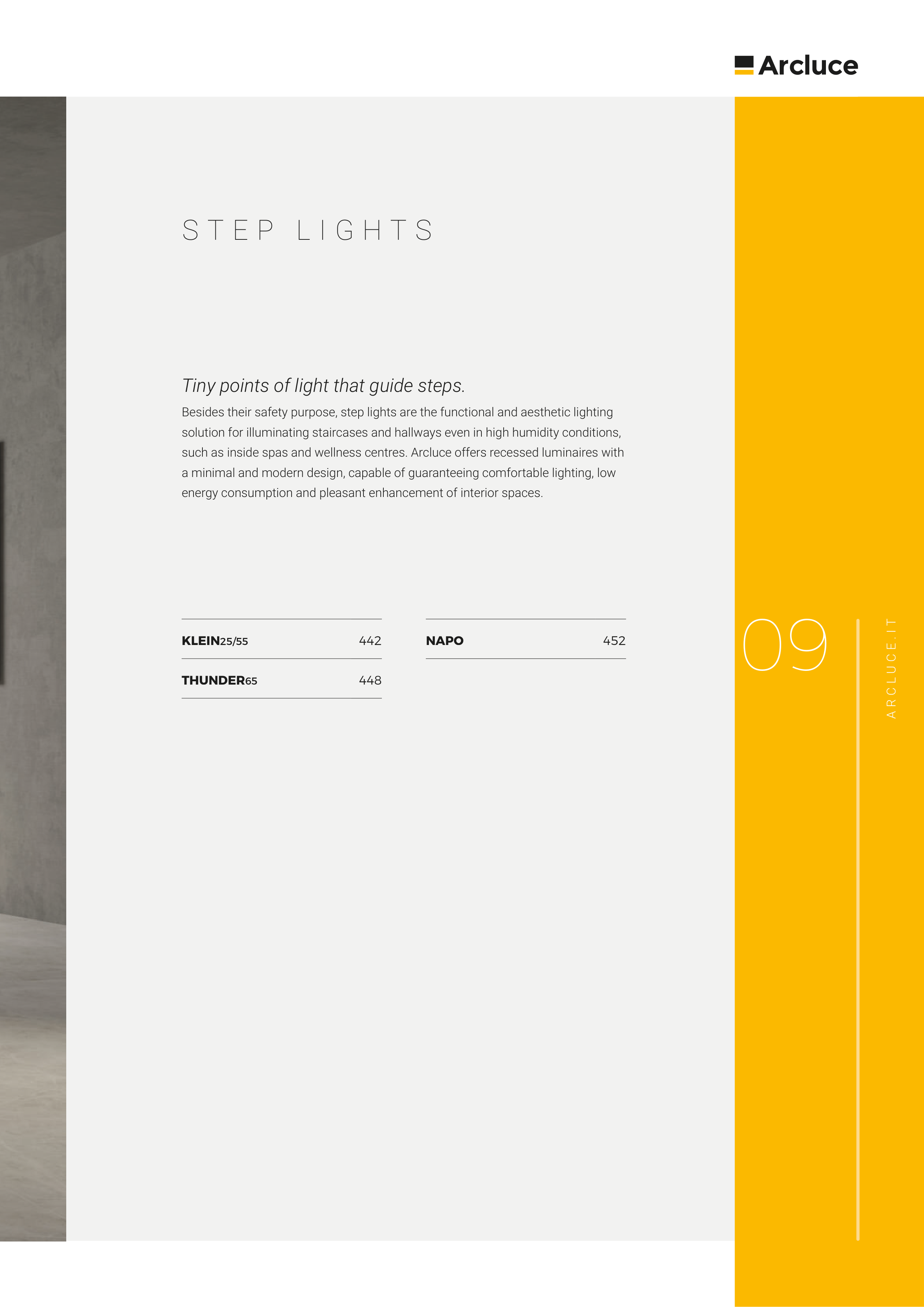 such as inside spas and wellness centres. Arcluce offers recessed luminaires with