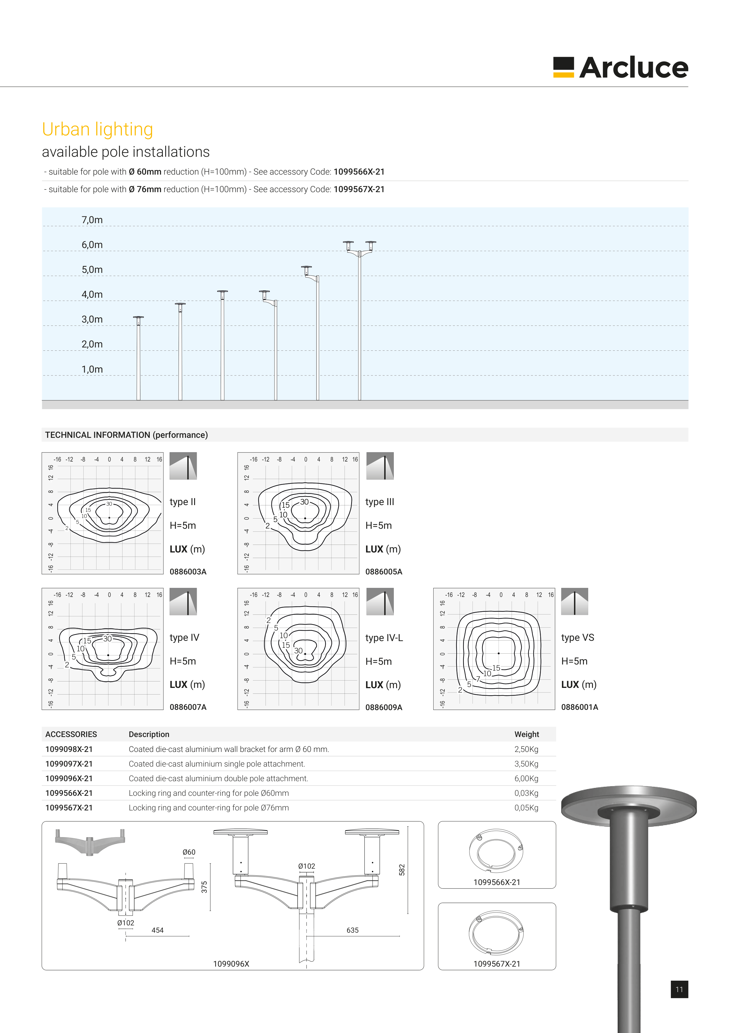 - suitable for pole with Ø 60mm reduction (H=100mm) - See accessory Code: 1099566X-21