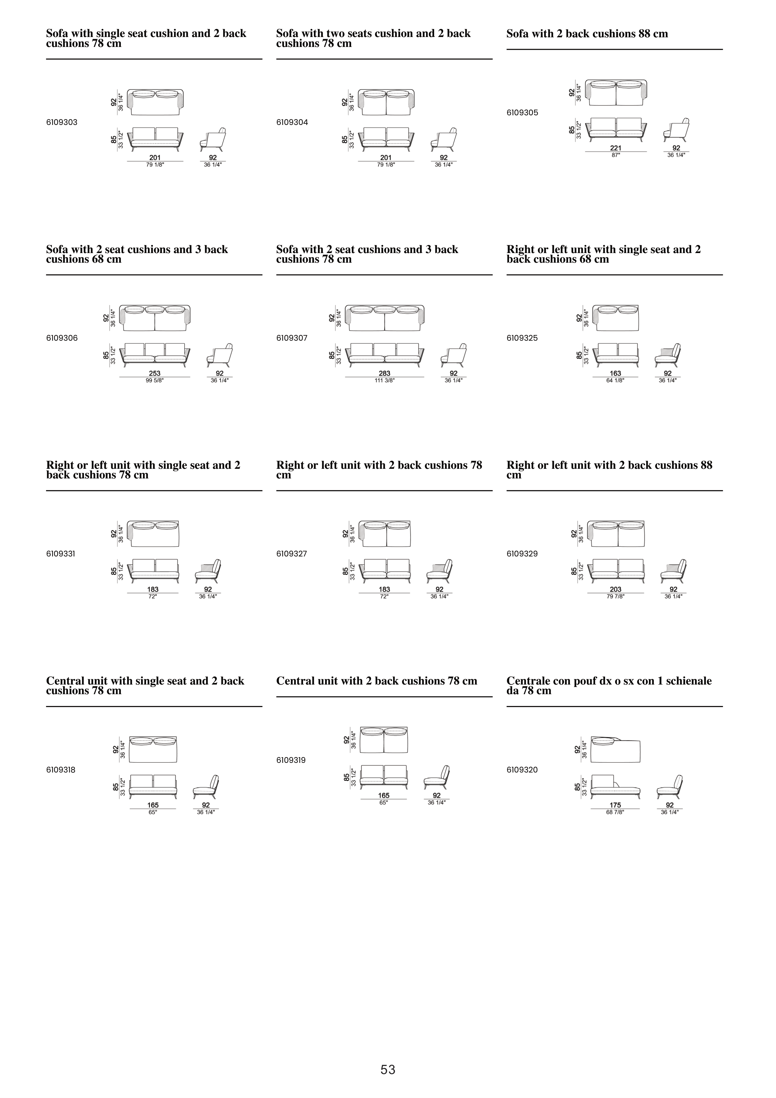 Right or left unit with 2 back cushions 78