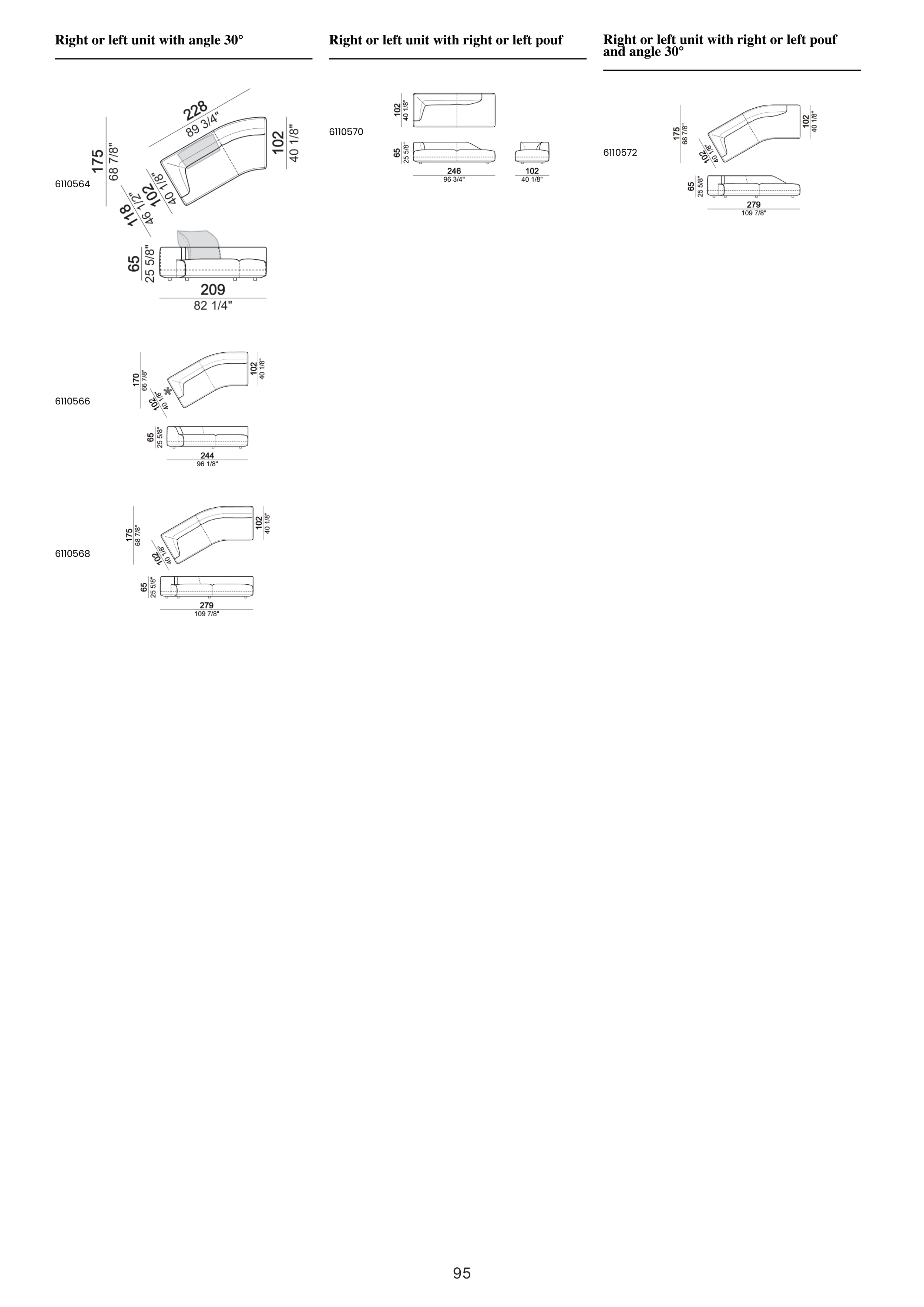 Right or left unit with right or left pouf