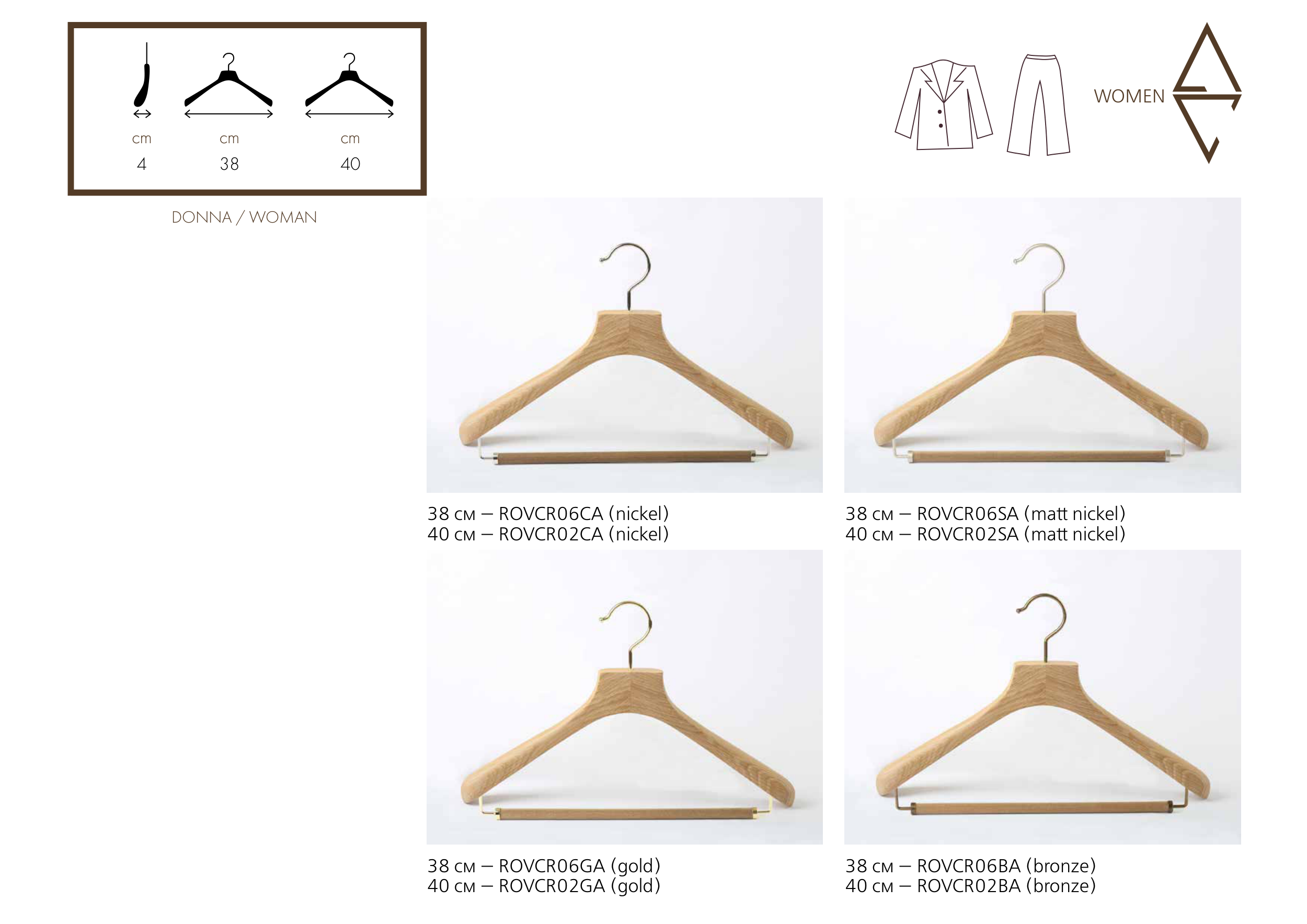 WOMEN 38 см — ROVCR06CA (nickel) 40 см — ROVCR02CA (nickel) 38 см — ROVCR06GA (gold) 40 см — ROVCR02GA (gold) 38 см — ROVCR06SA (matt nickel) 40 см — ROVCR02SA (matt nickel) 38 см — ROVCR06BA (bronze) 40 см — ROVCR02BA (bronze) cm 4 DONNA / WOMAN cm 40 cm 38