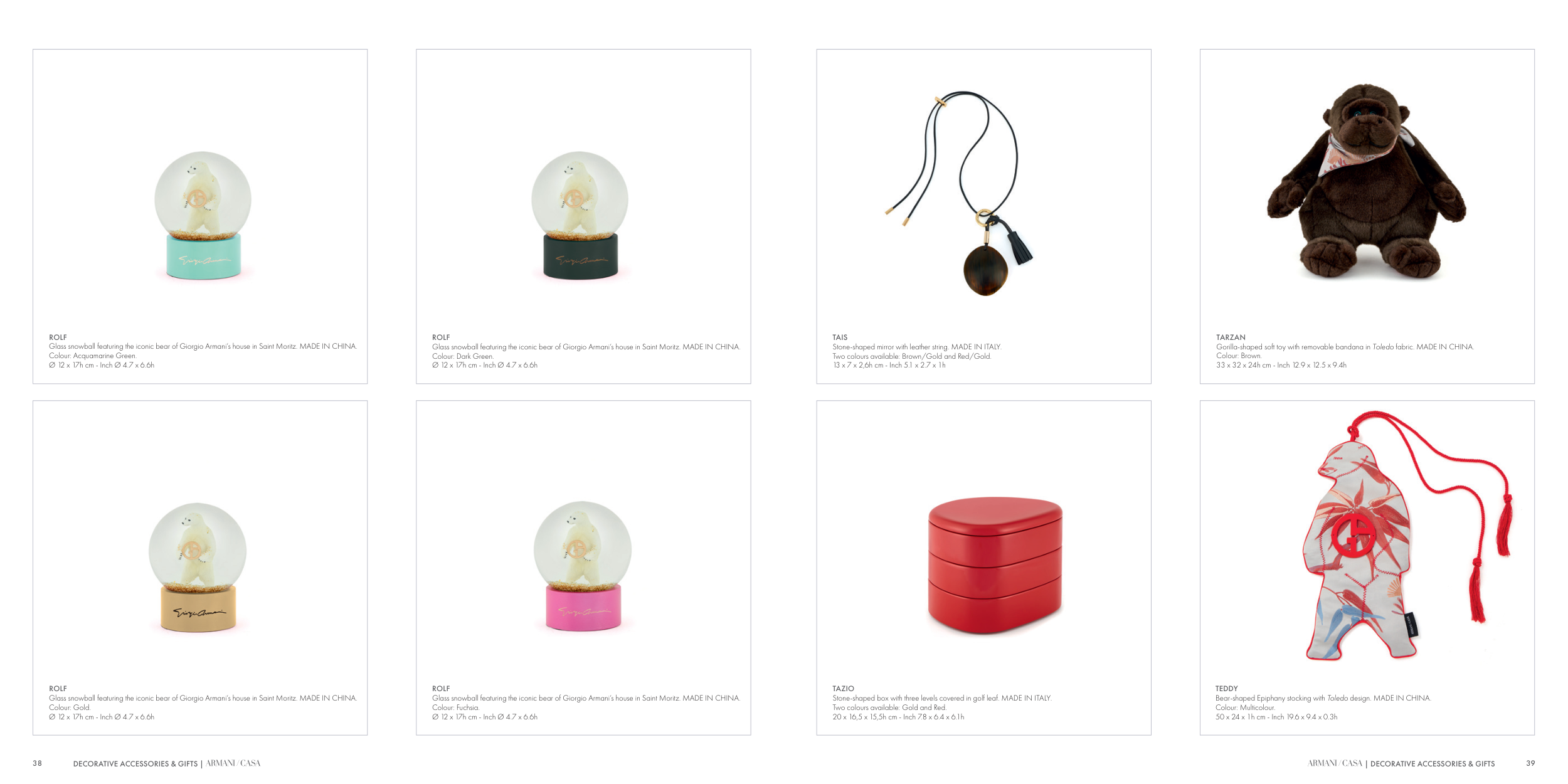 Glass snowball featuring the iconic bear of Giorgio Armani’s house in Saint Moritz. MADE IN CHINA.