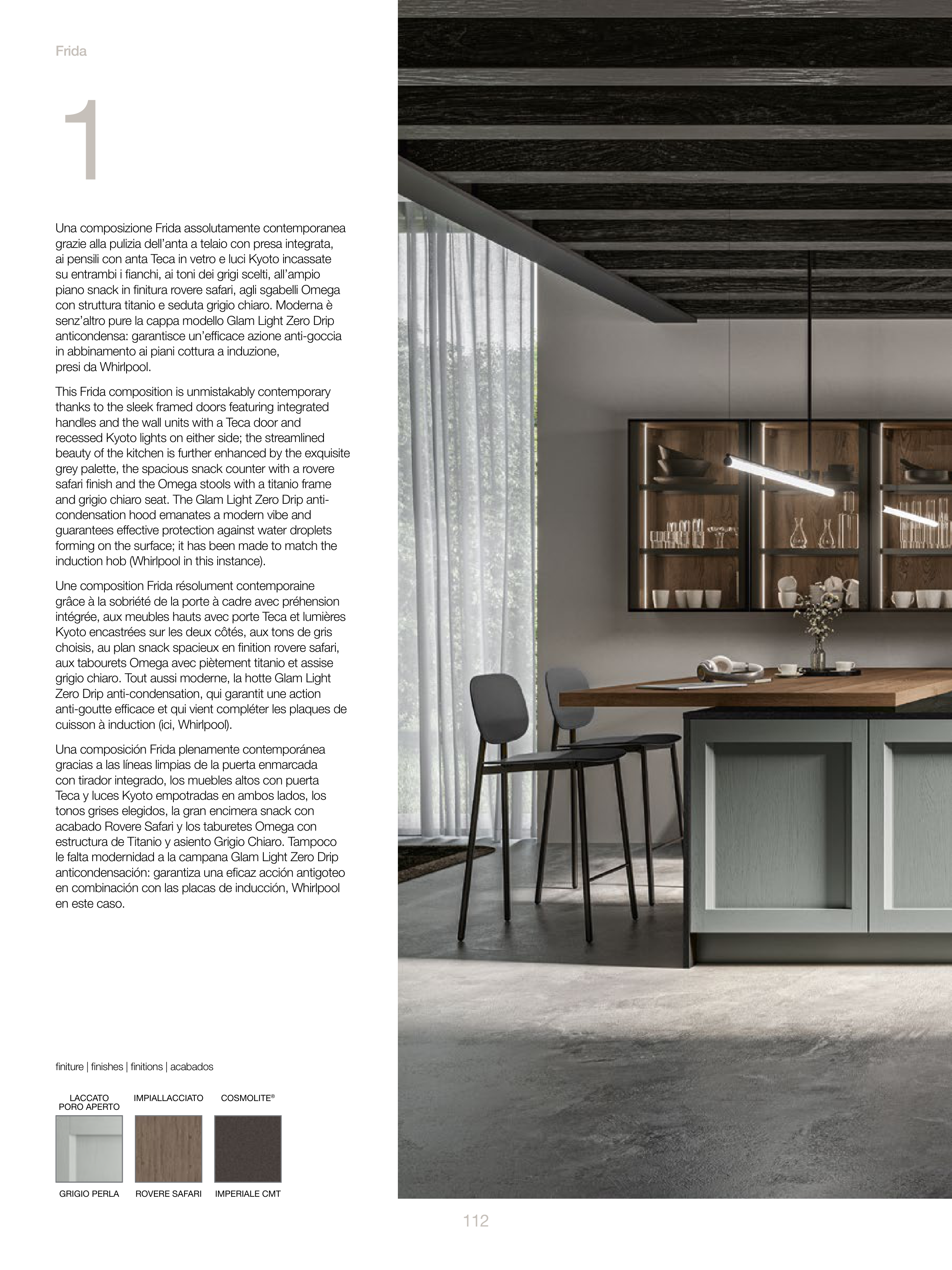 grigio chiaro. Tout aussi moderne, la hotte Glam Light
