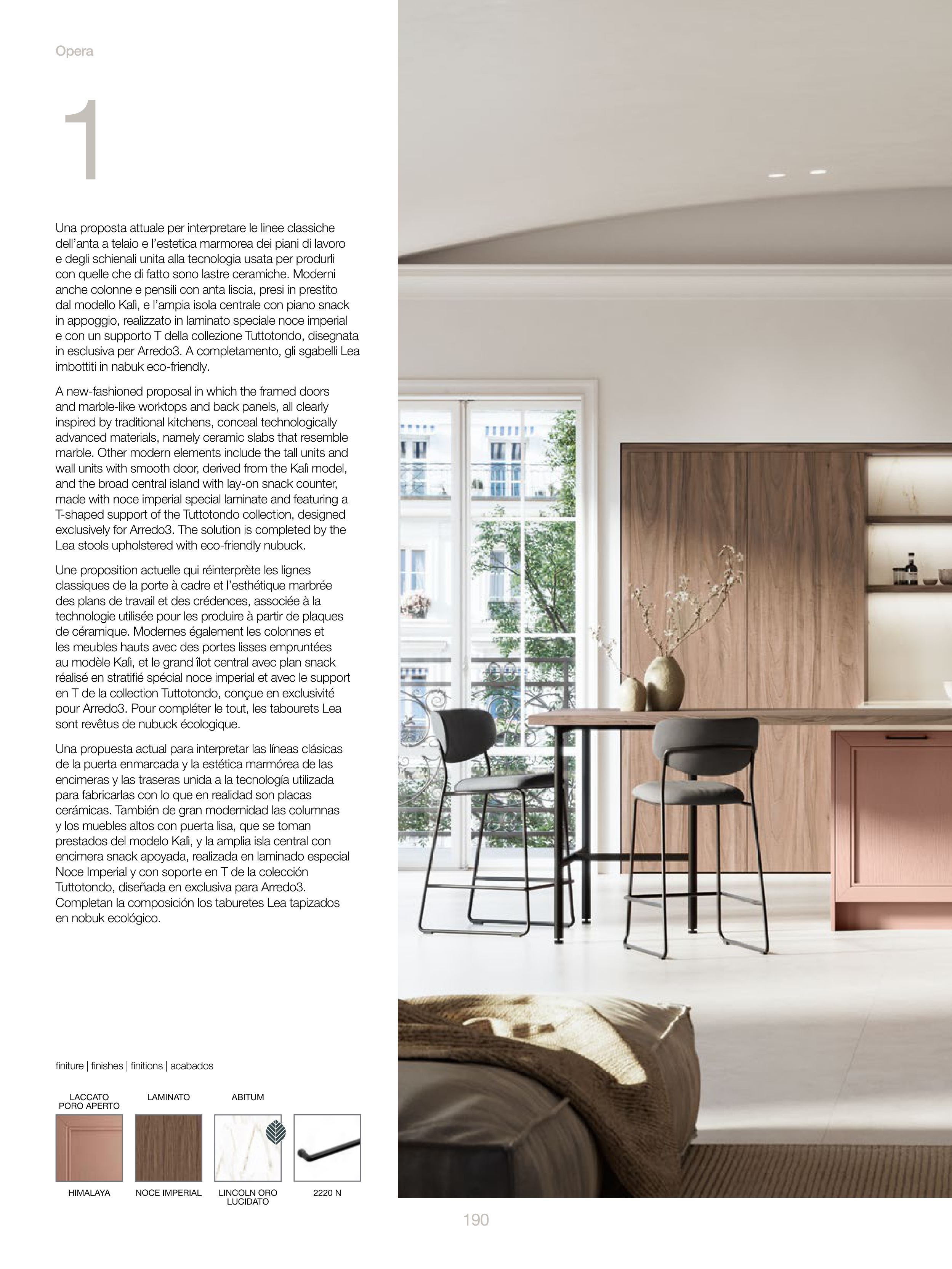 dal modello Kalì, e l’ampia isola centrale con piano snack