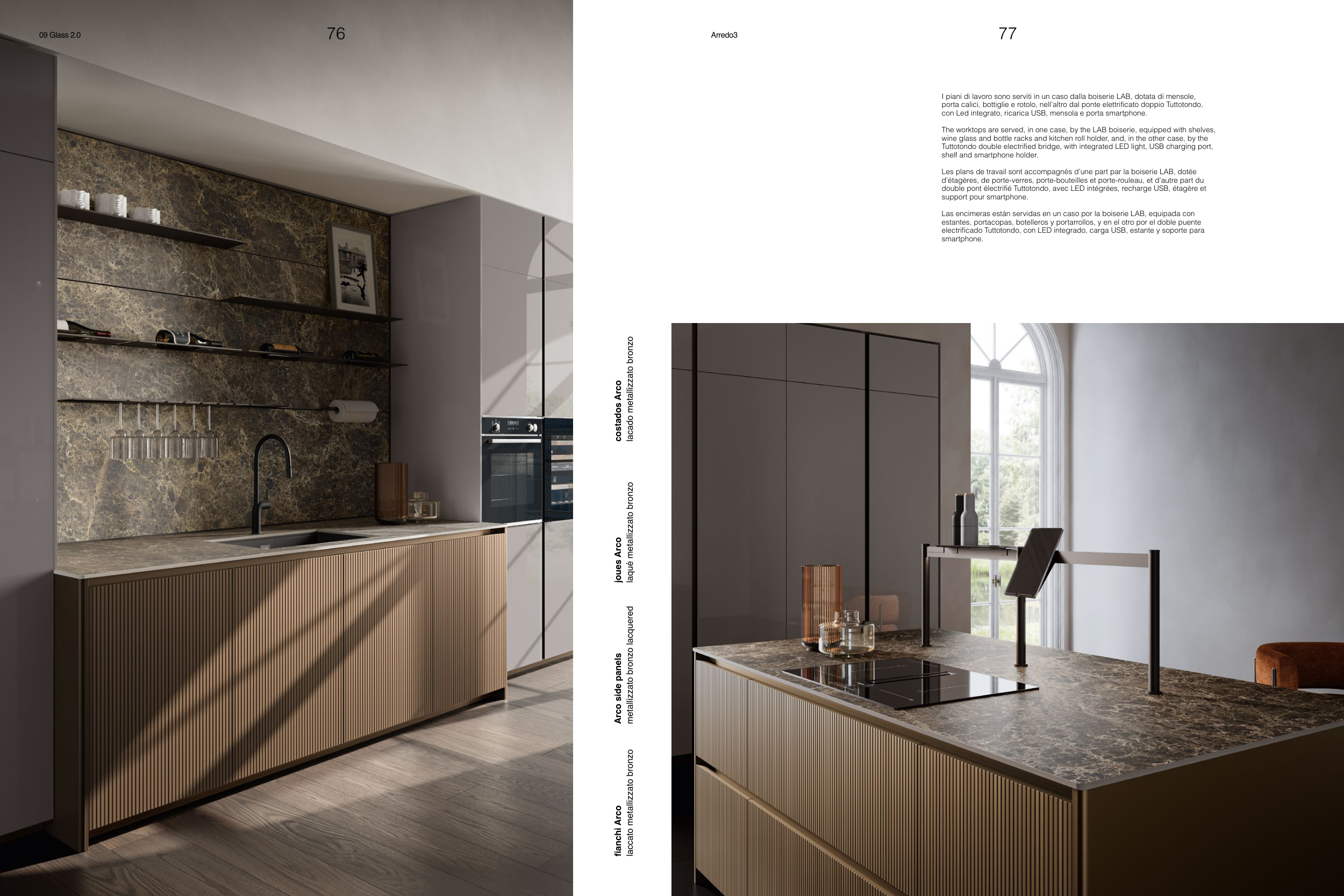 The worktops are served, in one case, by the LAB boiserie, equipped with shelves,