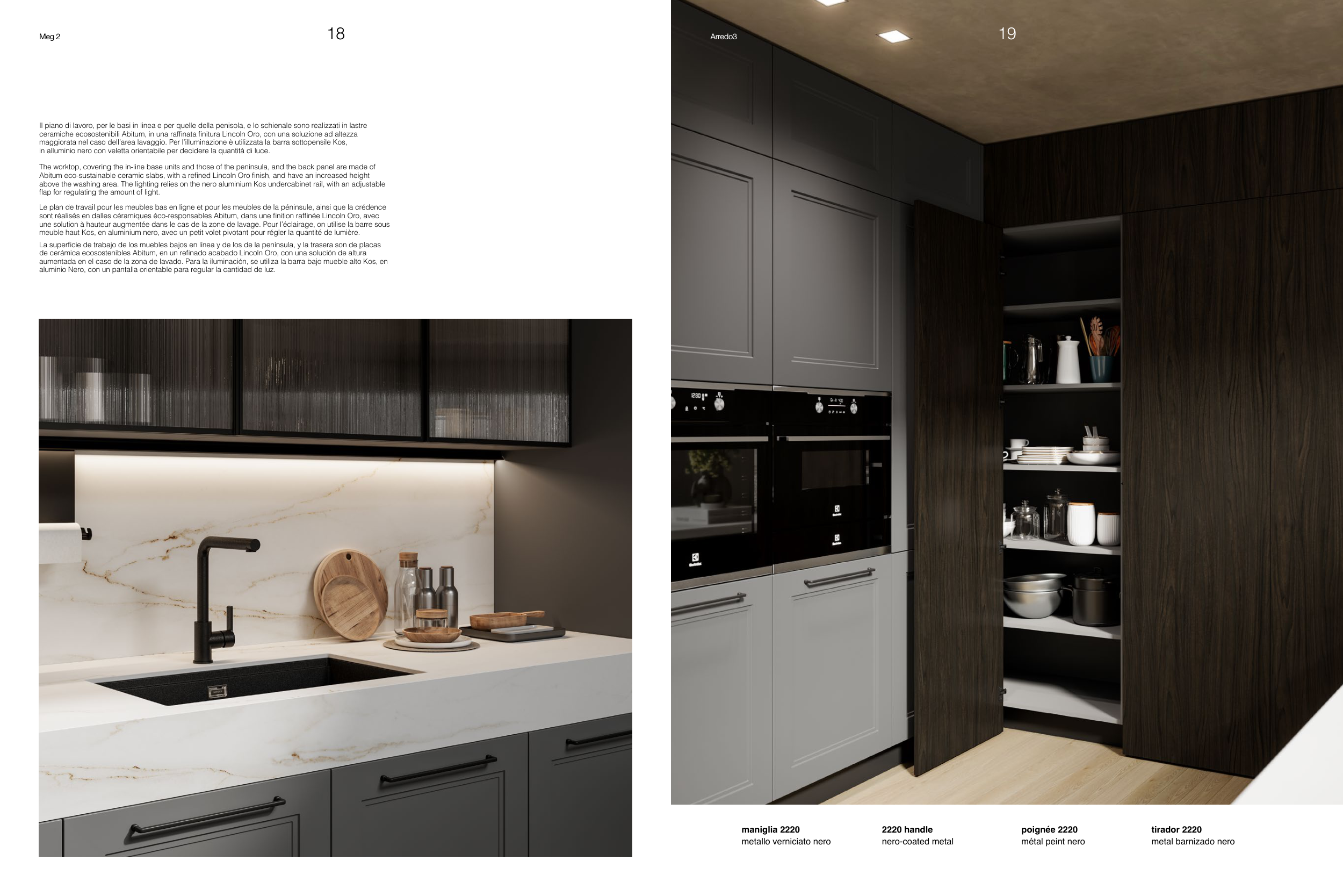 sont réalisés en dalles céramiques éco-responsables Abitum, dans une finition raffinée Lincoln Oro, avec