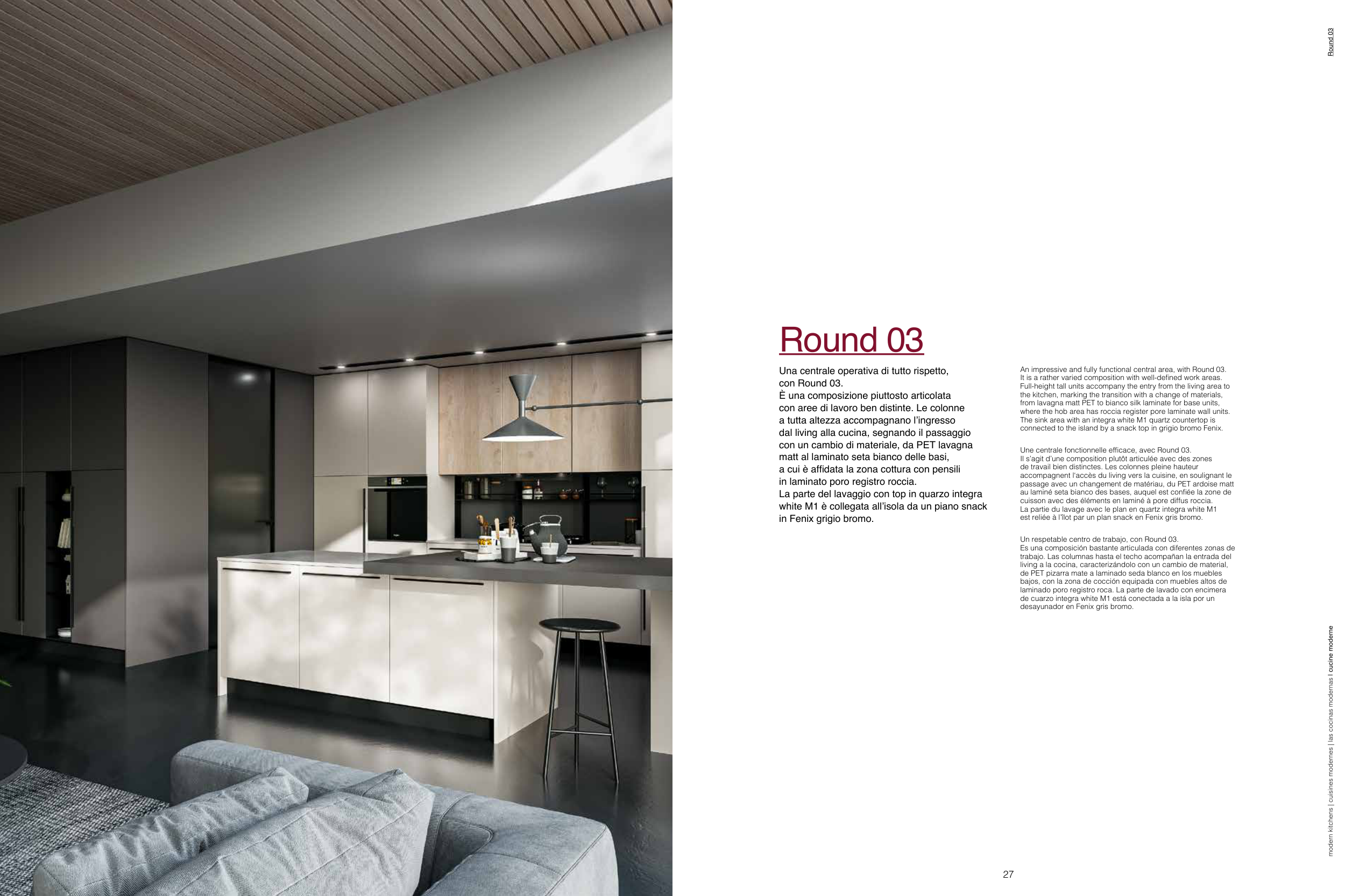 connected to the island by a snack top in grigio bromo Fenix.