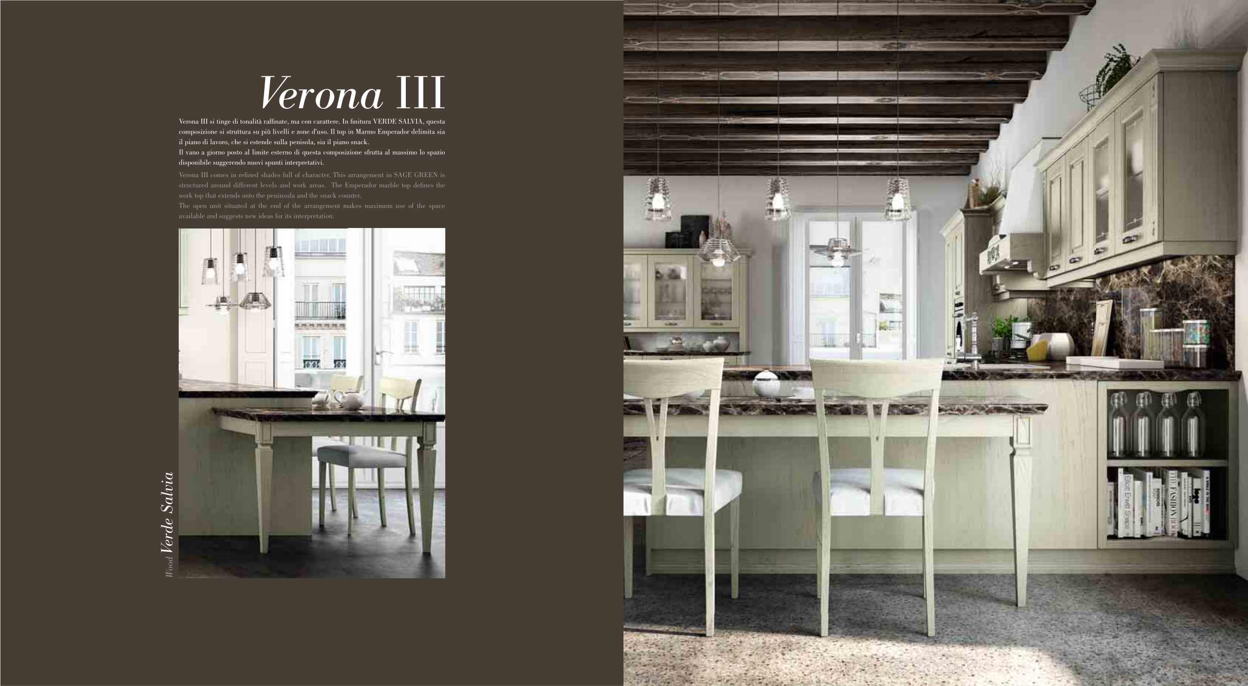 Verona III si tinge di tonalità raffinate, ma con carattere. In finitura VERDE SALVIA, questa