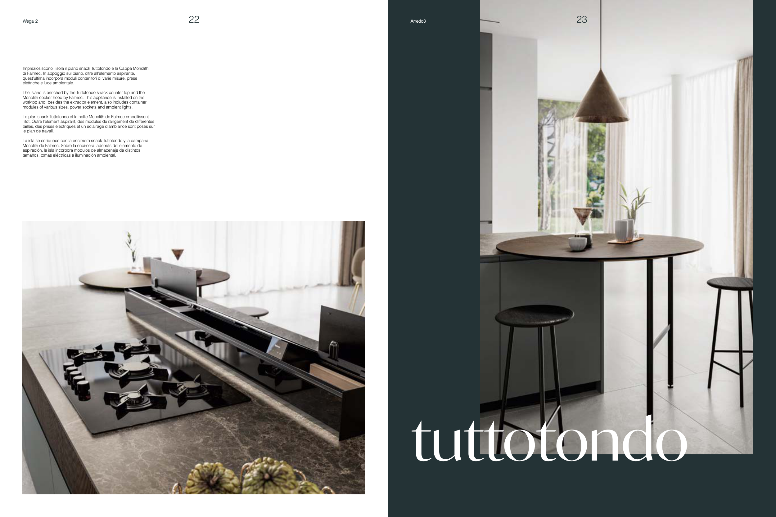 Le plan snack Tuttotondo et la hotte Monolith de Falmec embellissent