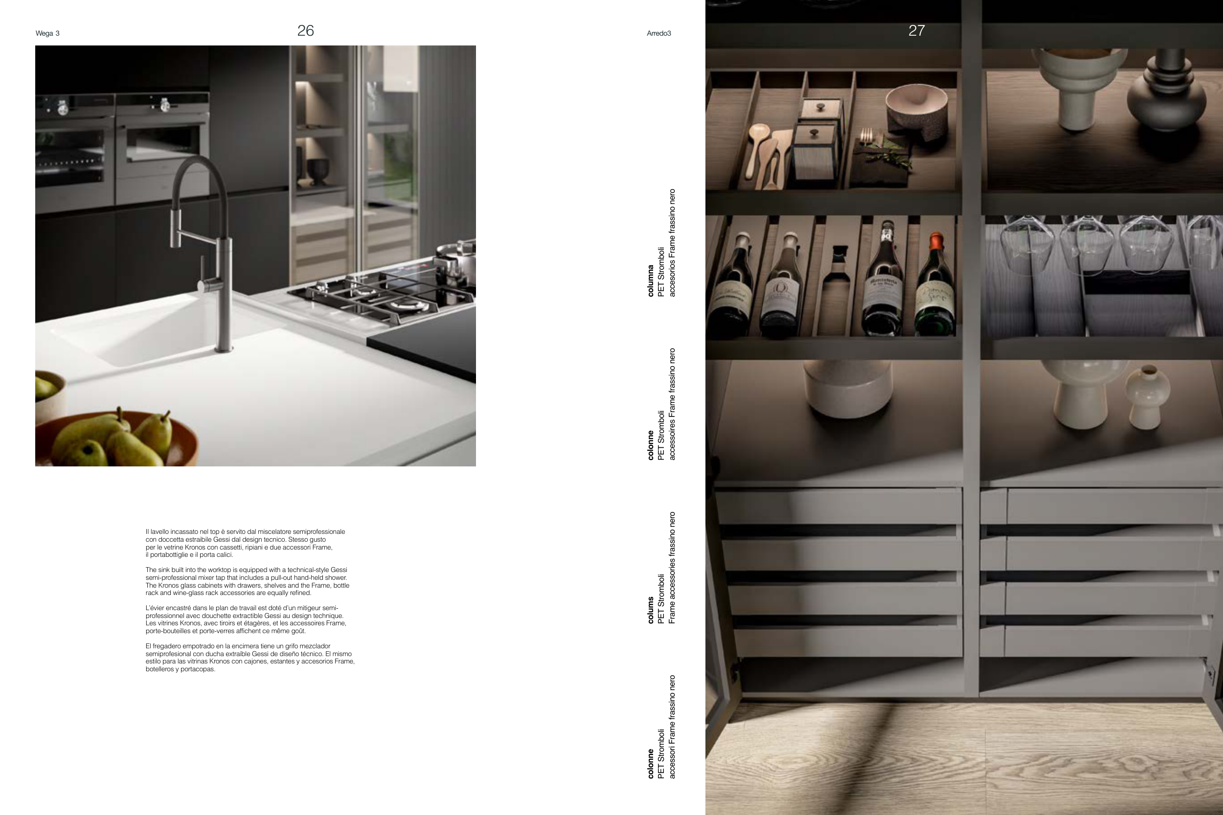 The Kronos glass cabinets with drawers, shelves and the Frame, bottle