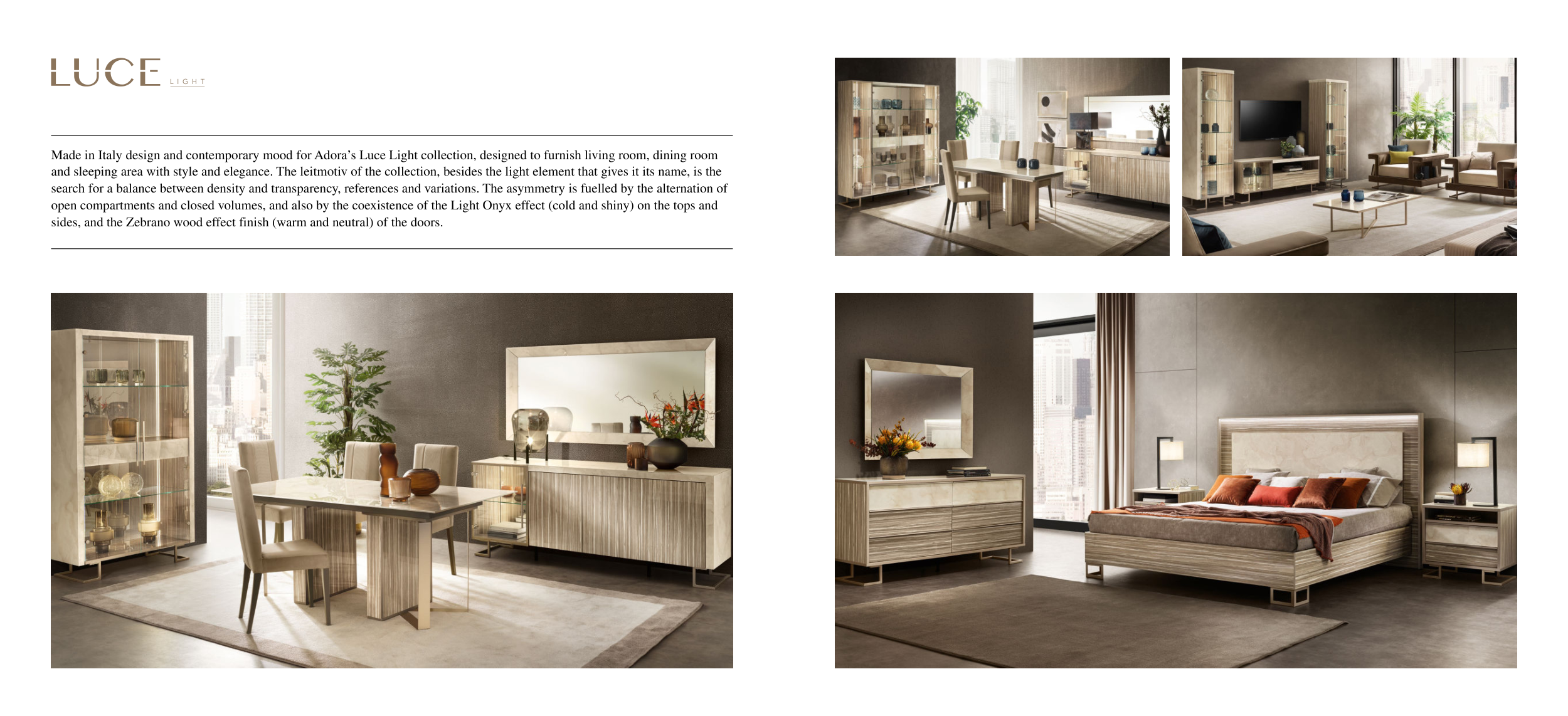 Made in Italy design and contemporary mood for Adora’s Luce Light collection, designed to furnish living room, dining room