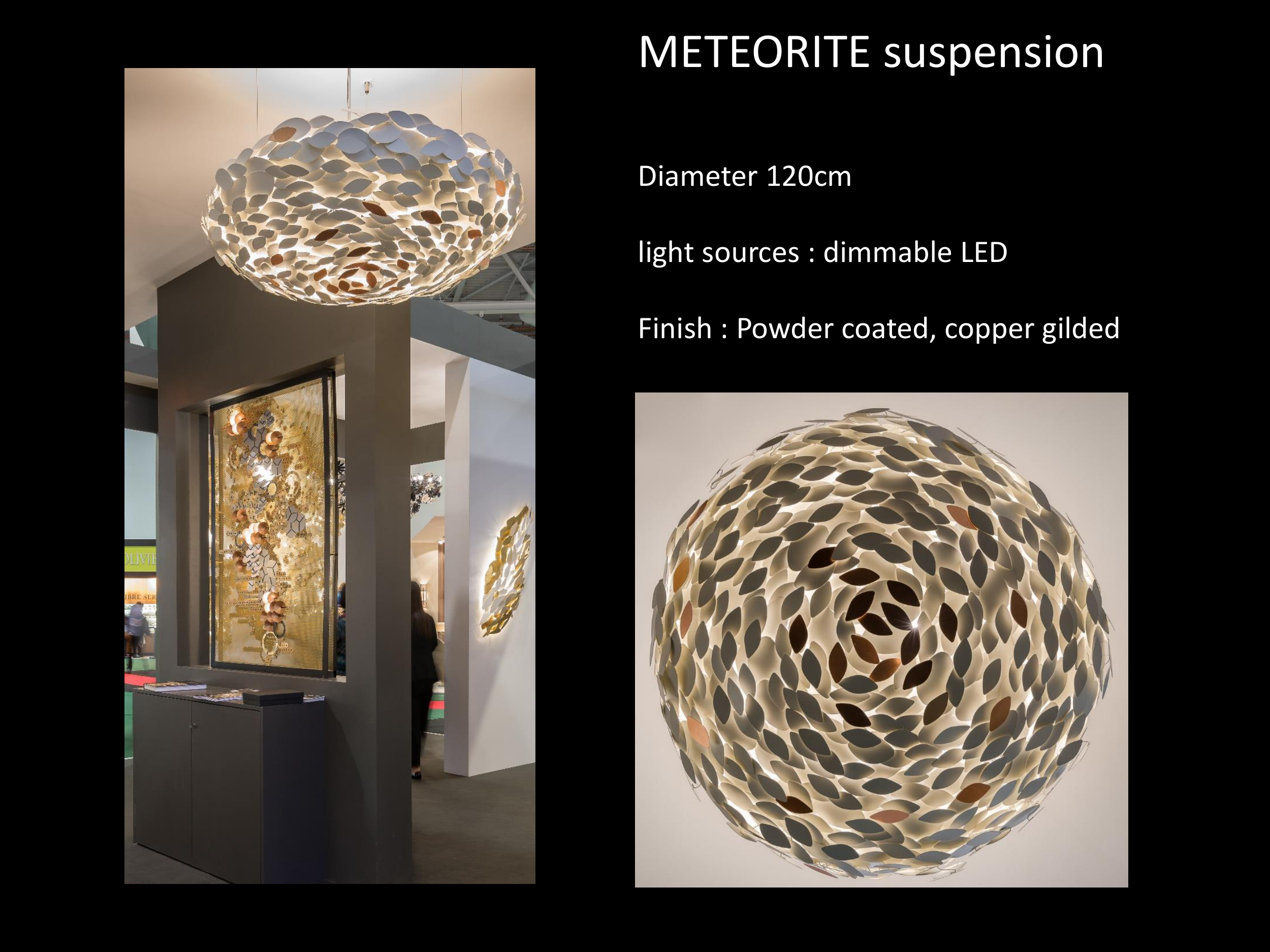 Finish : Powder coated, copper gilded