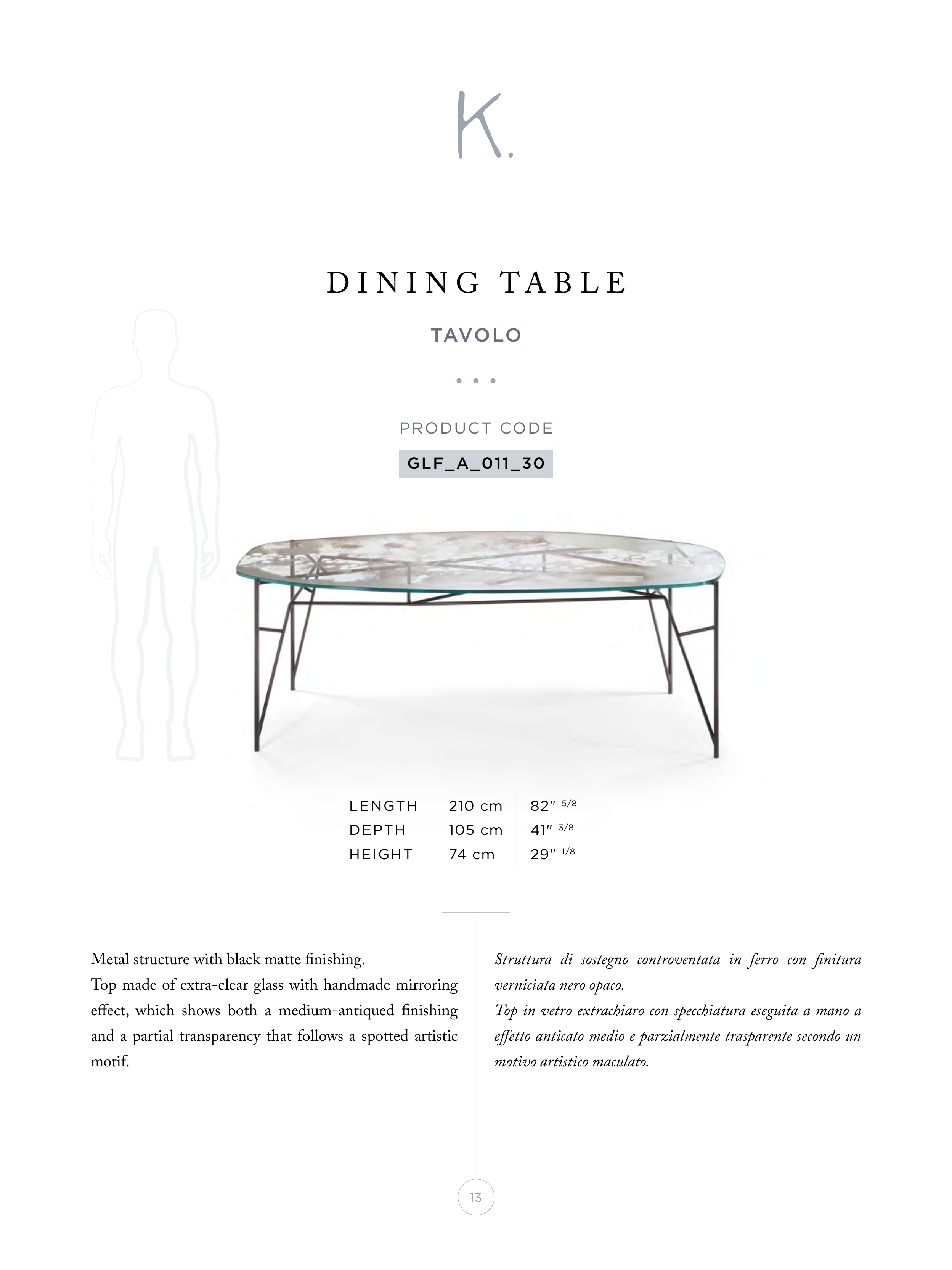 Top made of extra-clear glass with handmade mirroring