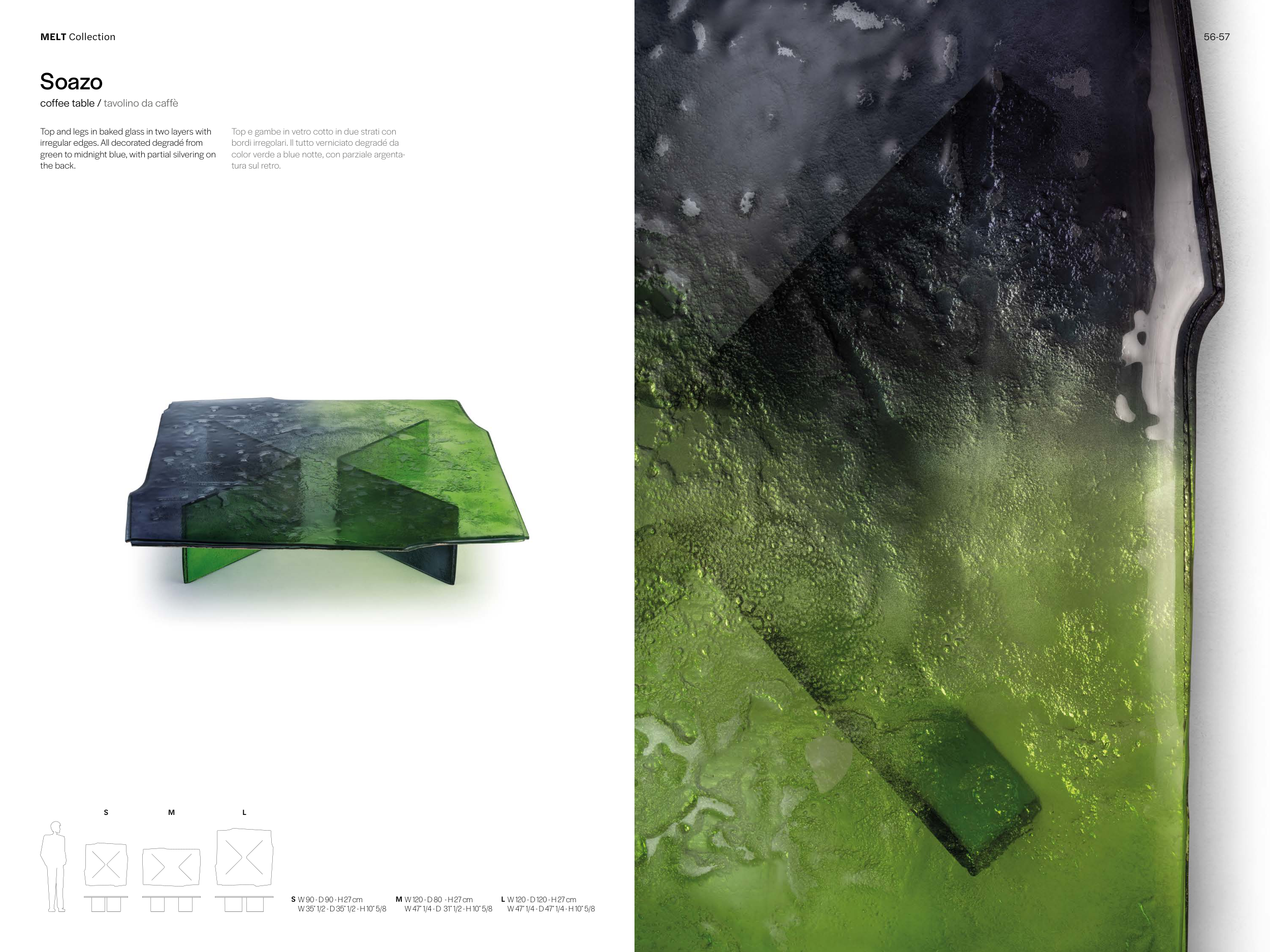 Top and legs in baked glass in two layers with