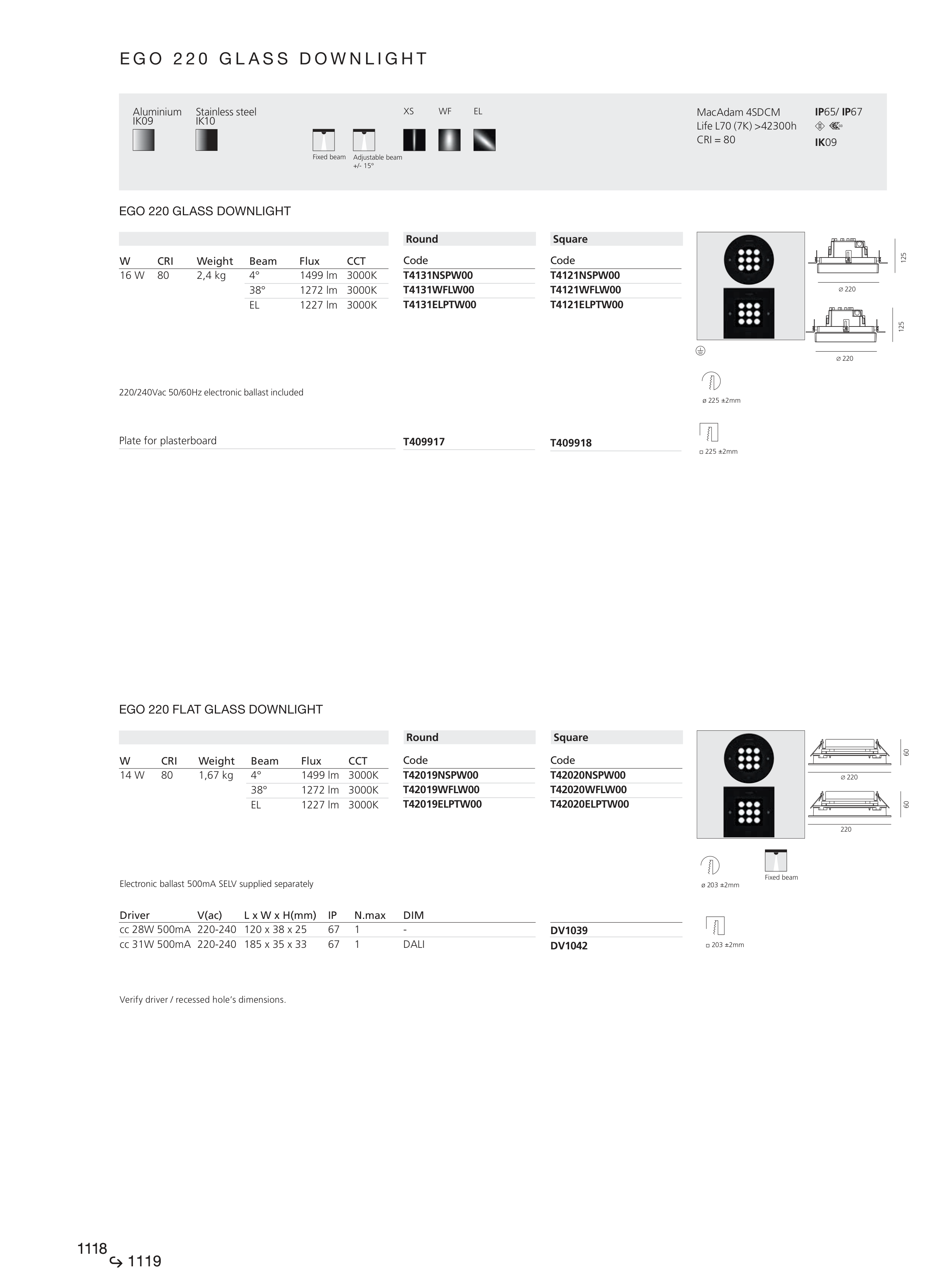 EGO 220 FLAT GLASS DOWNLIGHT