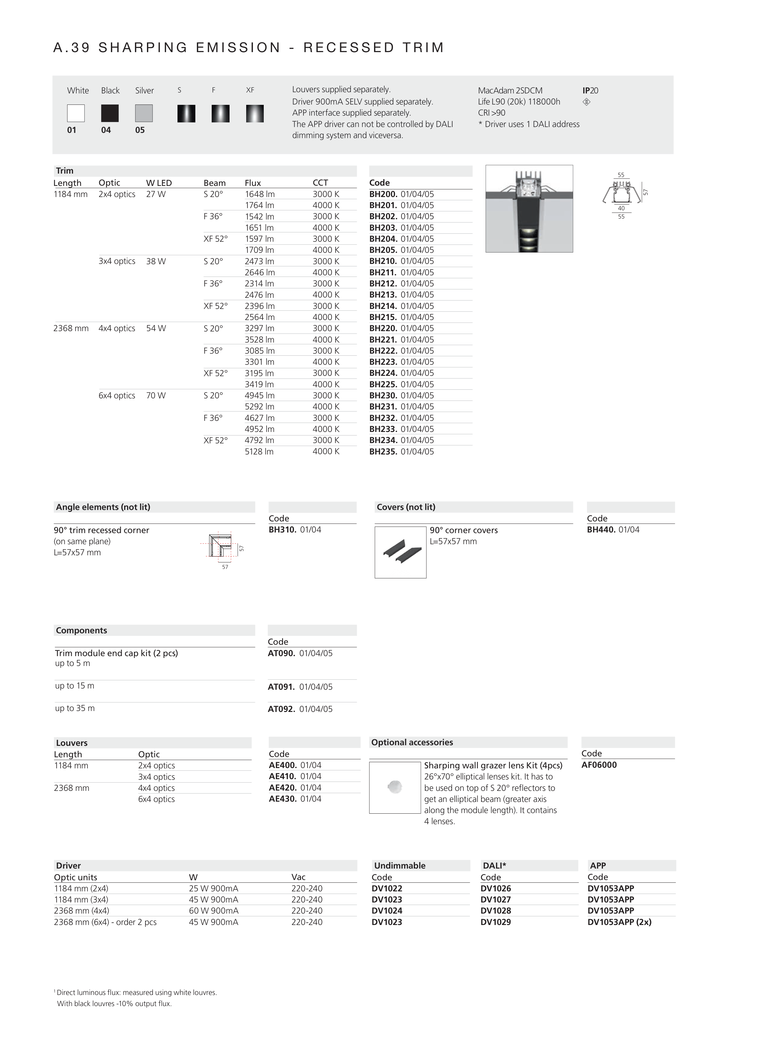 With black louvres -10% output flux.
