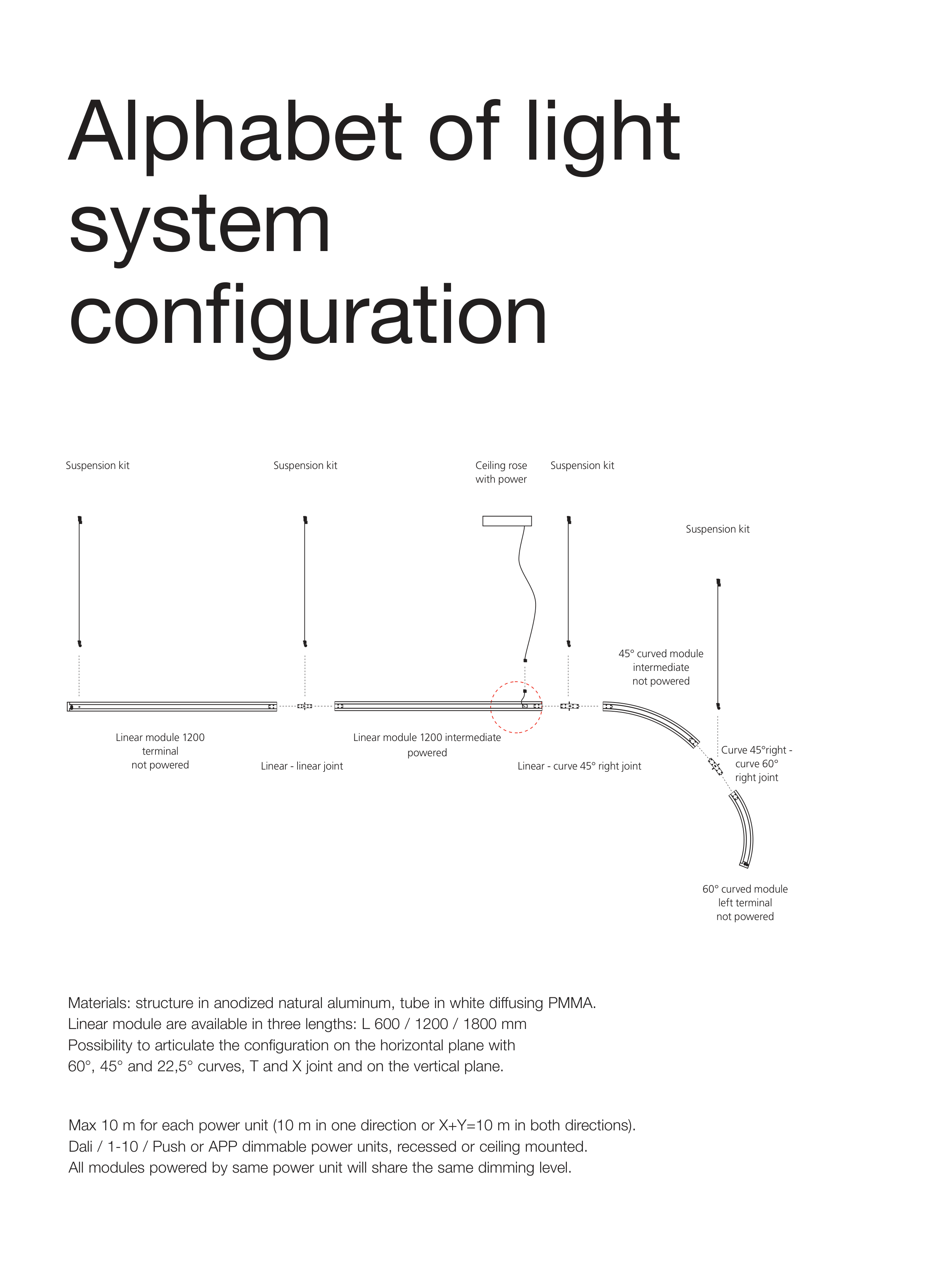 Linear module are available in three lengths: L 600 / 1200 / 1800 mm